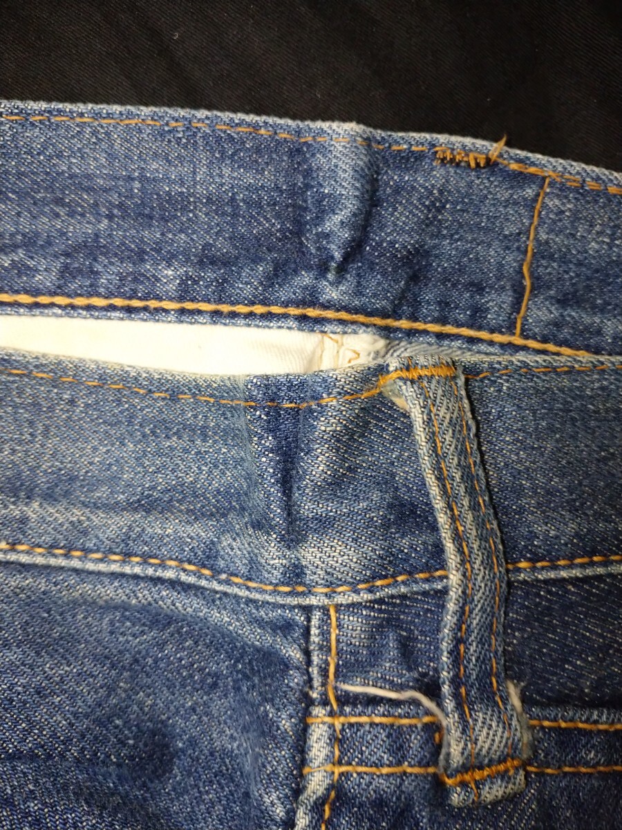 ウエスト両サイドを少し詰めたのを戻した跡、ボタンホールに解れ、両裾にロールアップ跡がございます