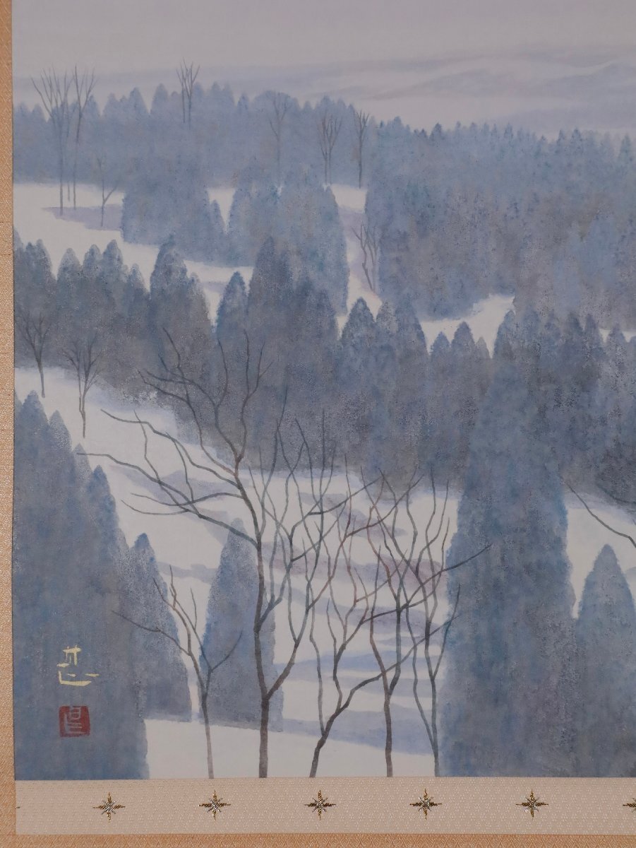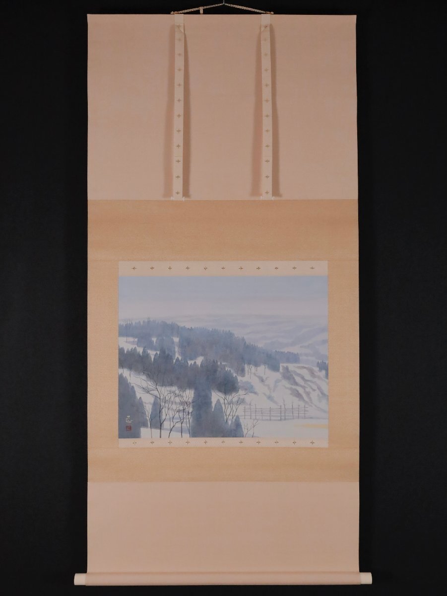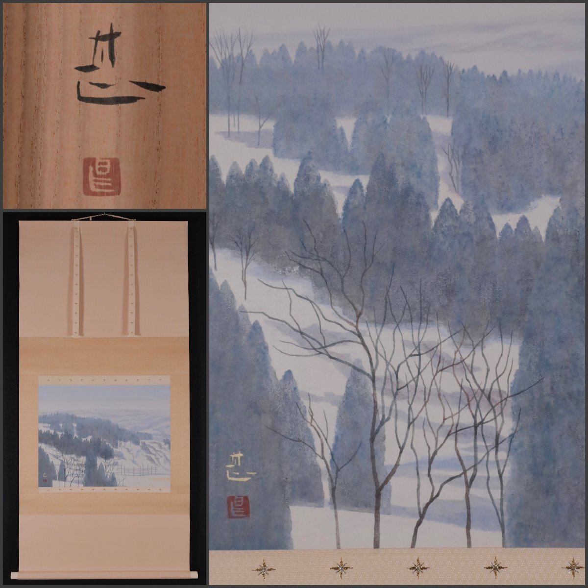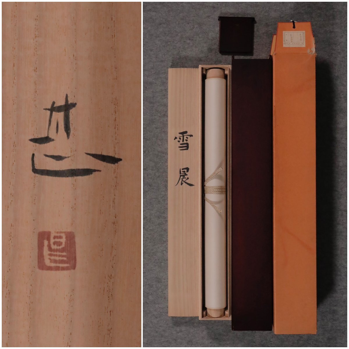 【模写】吉】12493 高越甚 雪晨 太巻 共箱 二重箱 堂本印象師事 日展会員 富山県の人 茶掛け 茶道具 山水図 掛軸 掛け軸 骨董品