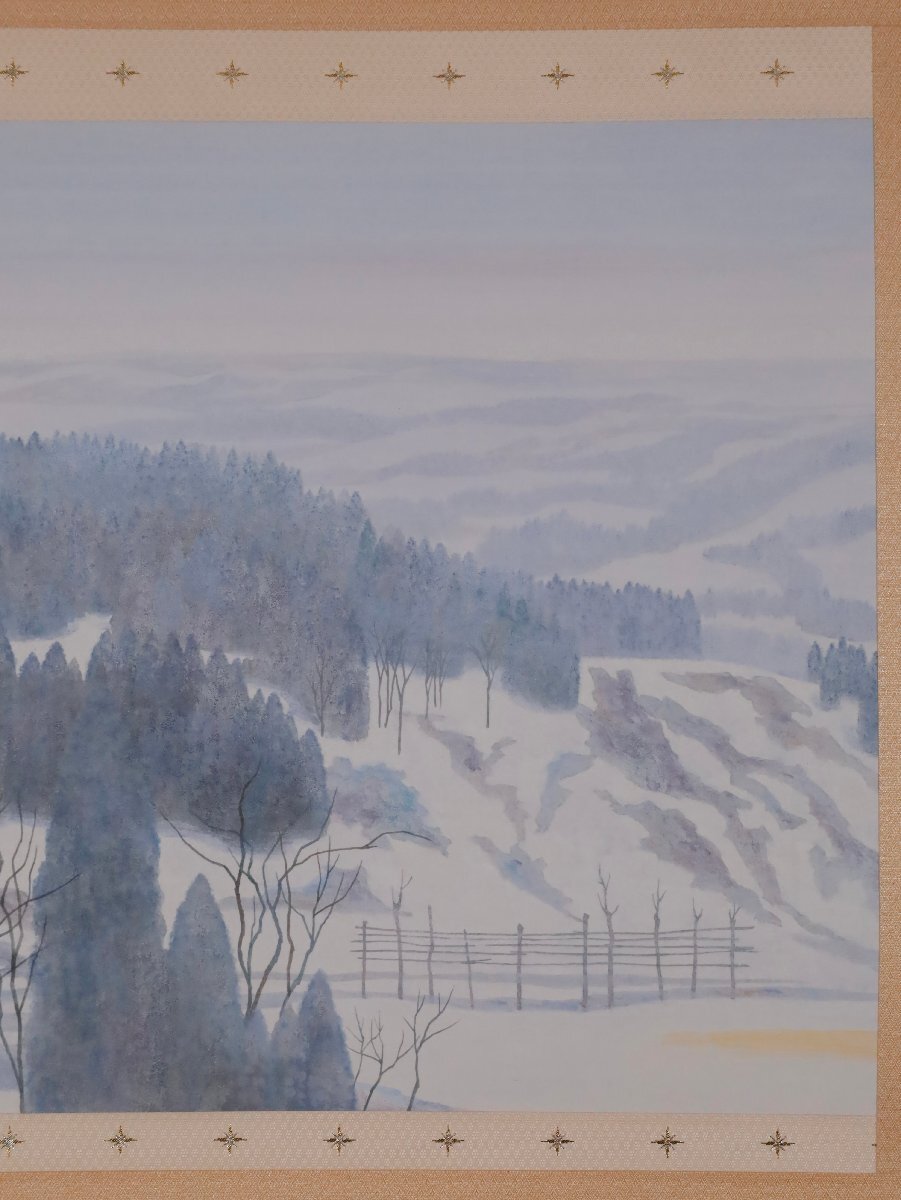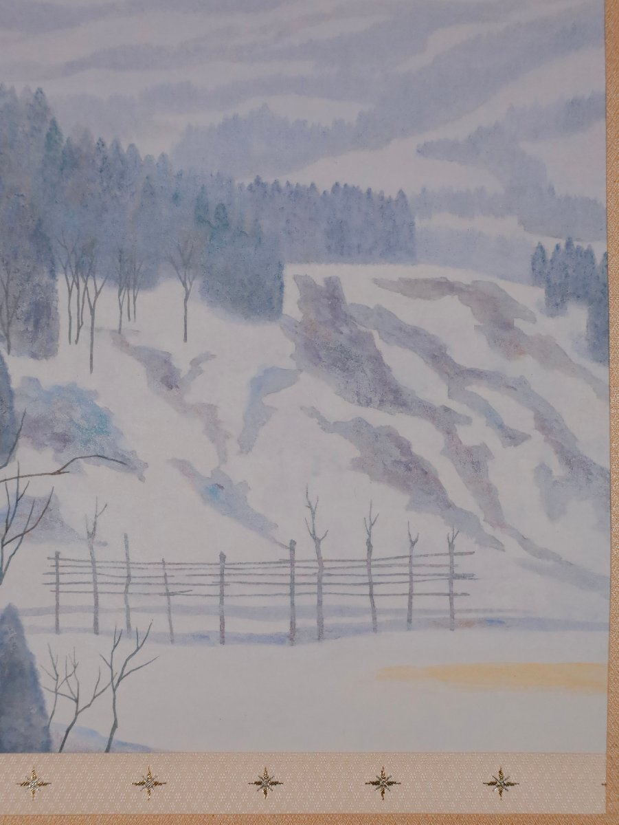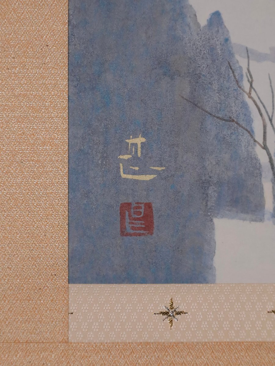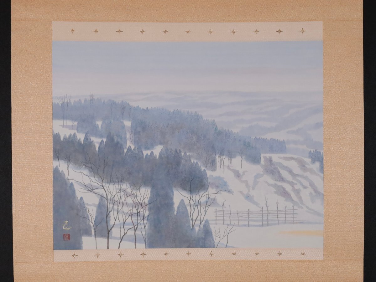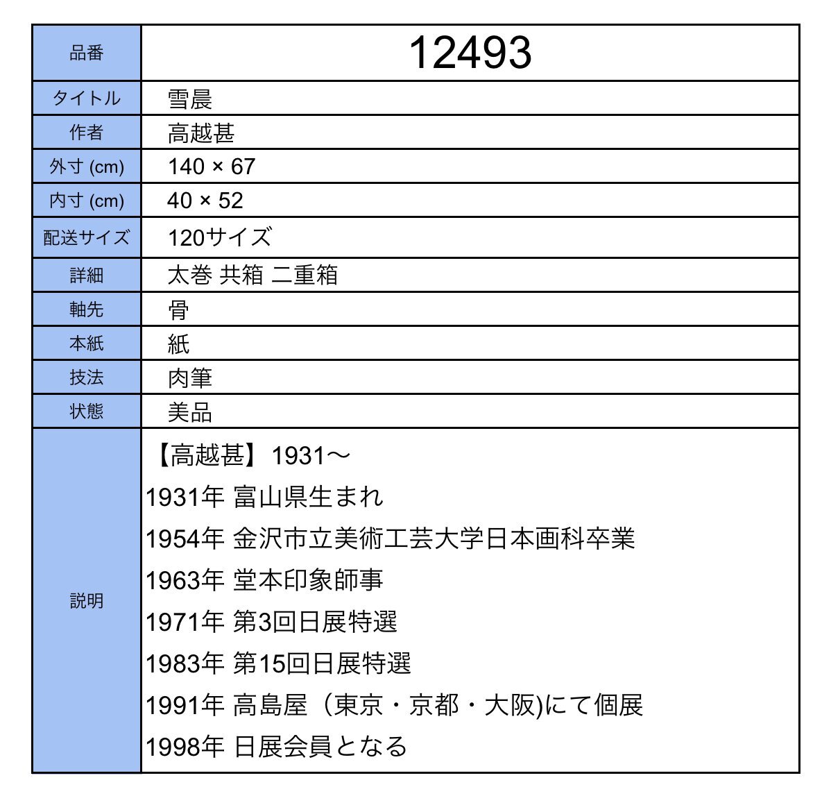 【模写】吉】12493 高越甚 雪晨 太巻 共箱 二重箱 堂本印象師事 日展会員 富山県の人 茶掛け 茶道具 山水図 掛軸 掛け軸 骨董品