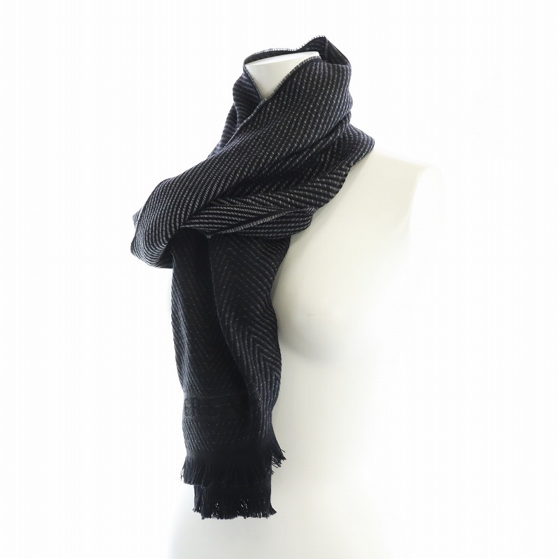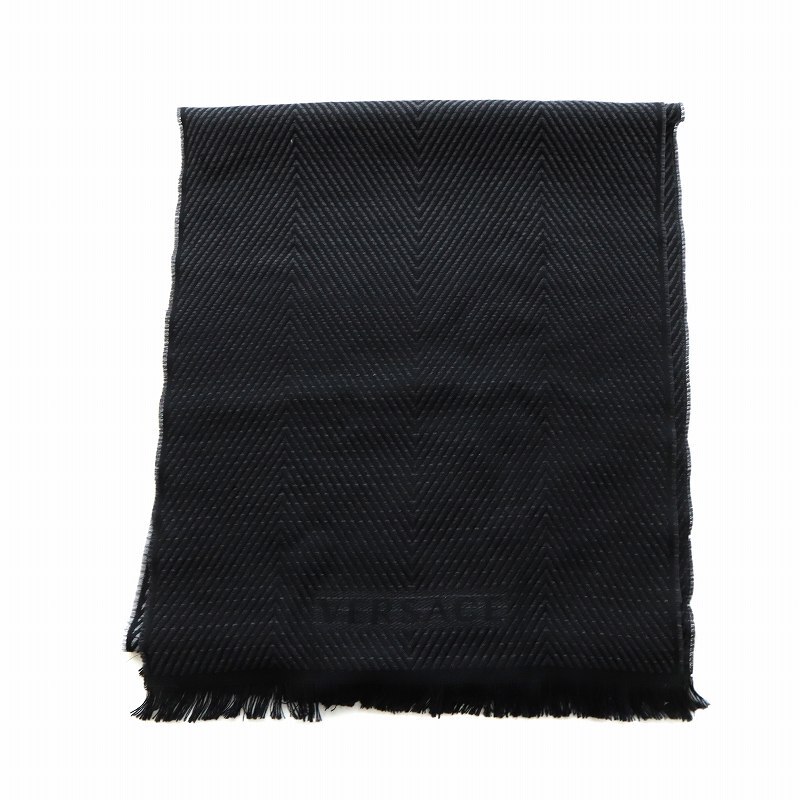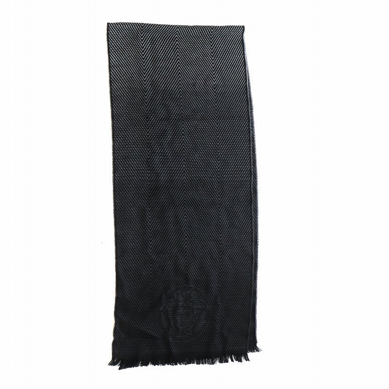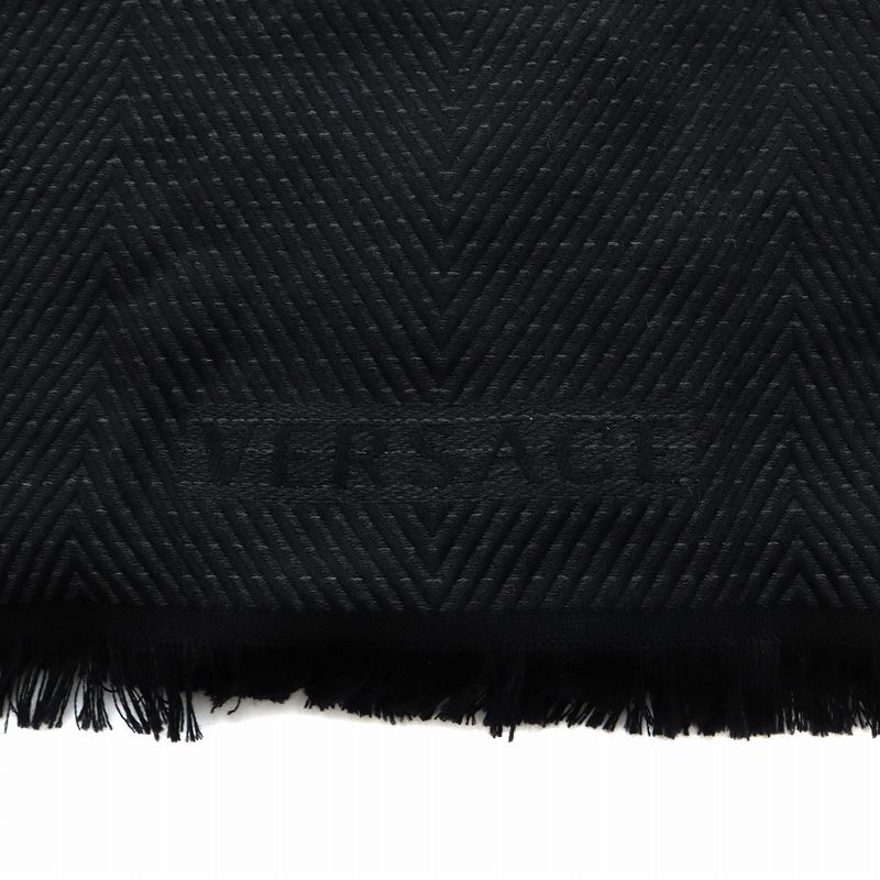 ヴェルサーチ ヴェルサーチェ VERSACE マフラー ストール ロゴ メデューサ フリンジ 羊毛 黒 ブラック ■GY18 /MQ メンズ