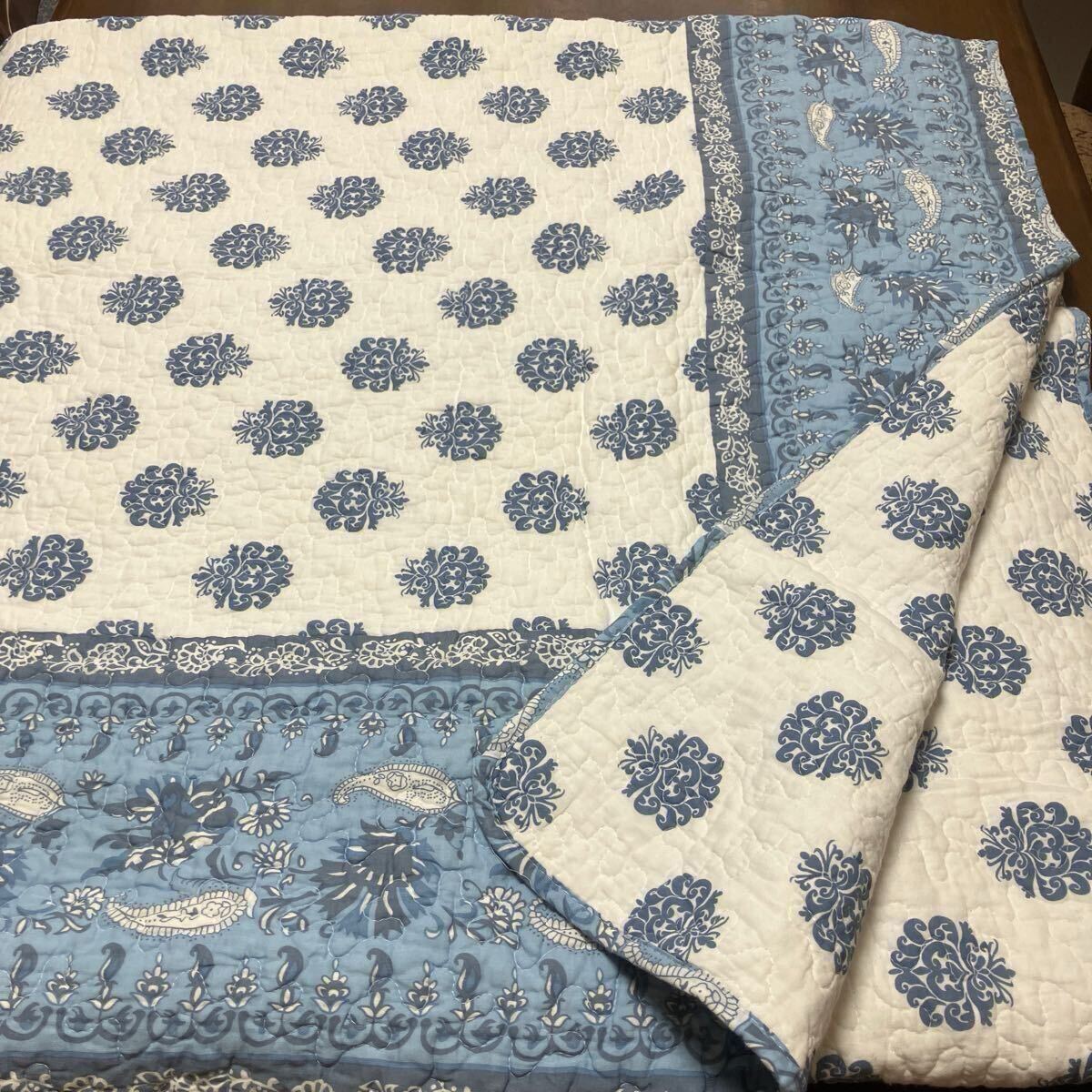 額縁 小紋柄のキルト生地のマルチカバーです。ソファーのカバーアップ、ベッドパッドなどマルチに便利に使って頂けます。裏面は小紋柄のみでリバーシブルにお使いいただけます。