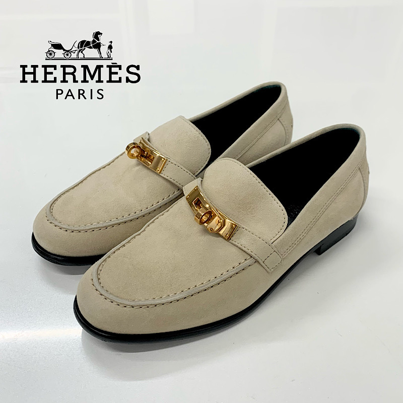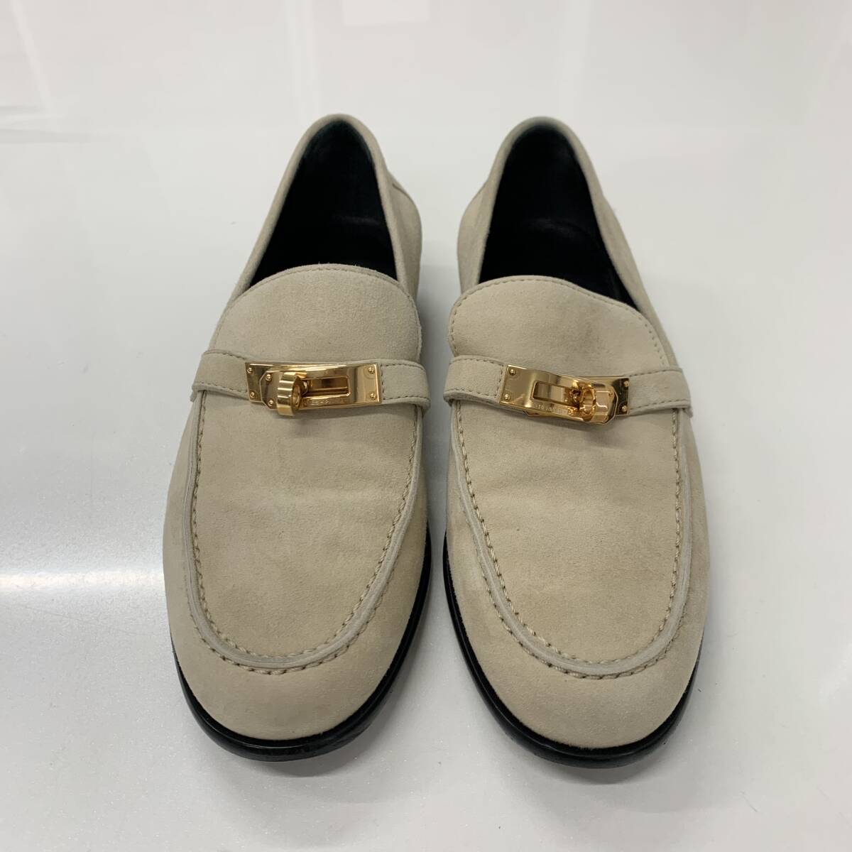 エルメス デスタン スエード ケリー金具 ローファー ベージュ