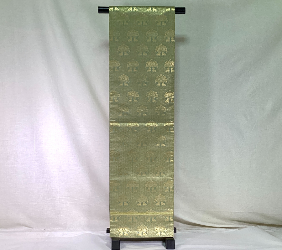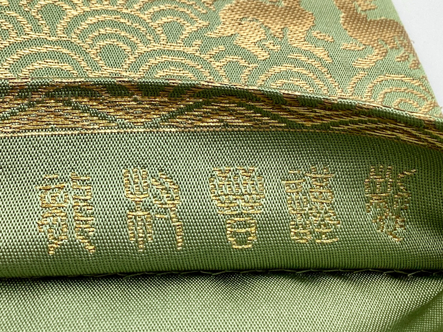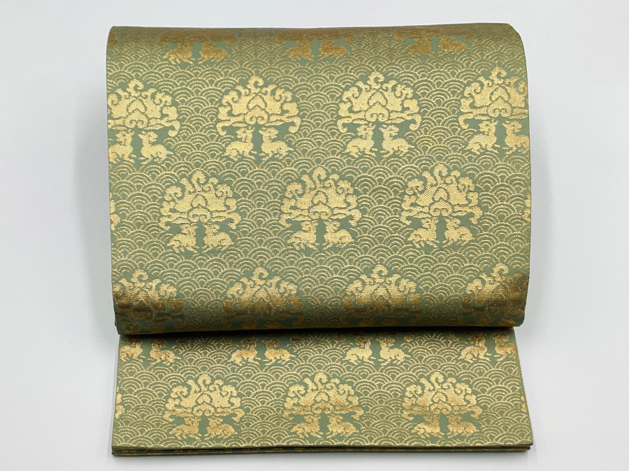 コメント | 中古の正絹お仕立て上がり袋帯です。 高級西陣織龍村晋の引箔全通柄の柔らかく締めやすいお品物です。 振袖、留袖、訪問着、附下、色無地等フォーマルきものにおすすめです。 使用感少ない未使用に近い綺麗な品物です。 |