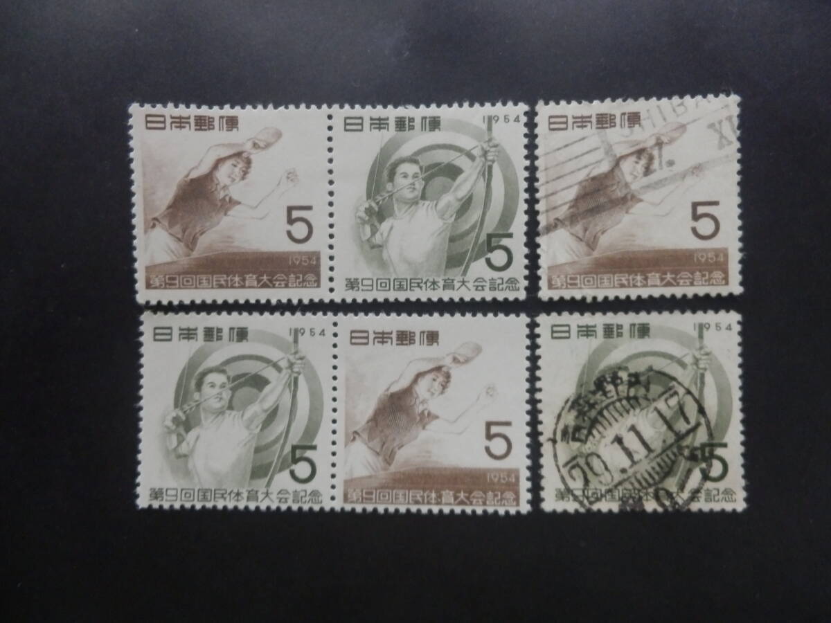 ☆記念切手: 第9回国体 2種完 未使用品(横連刷2セット)+使用済品☆