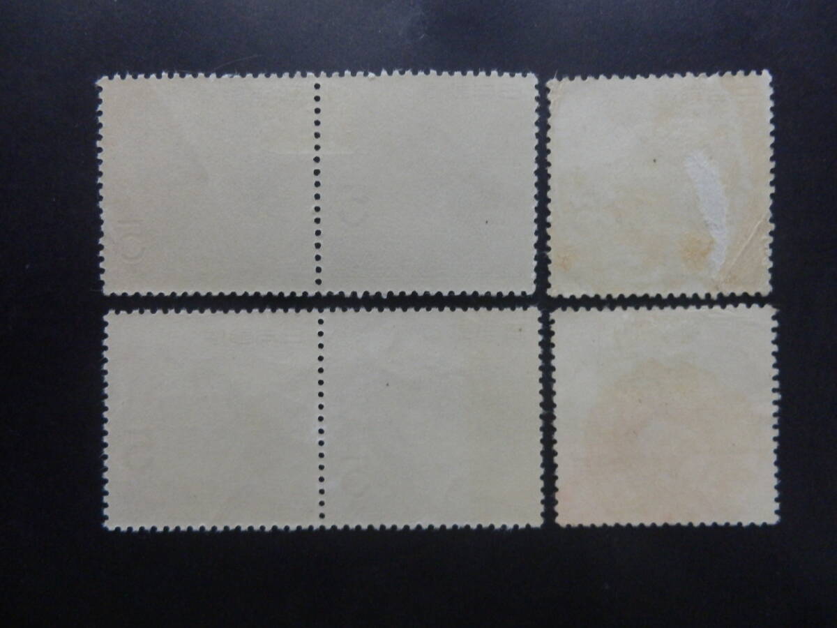 未使用の裏面糊の状態はオリジナルのまま残り1セットは完品状態、1セットはヒンジ跡があります。使用済はヒンジ跡があります。
