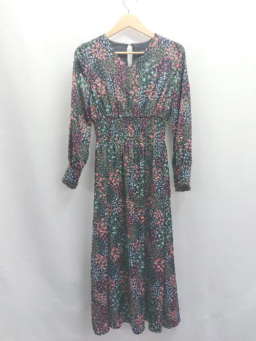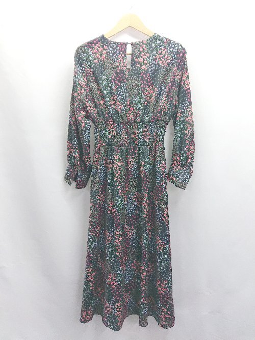 ◇ ⊂ NATURAL BEAUTY BASIC 花柄 長袖 ロング ワンピース サイズM ブラック レディース E