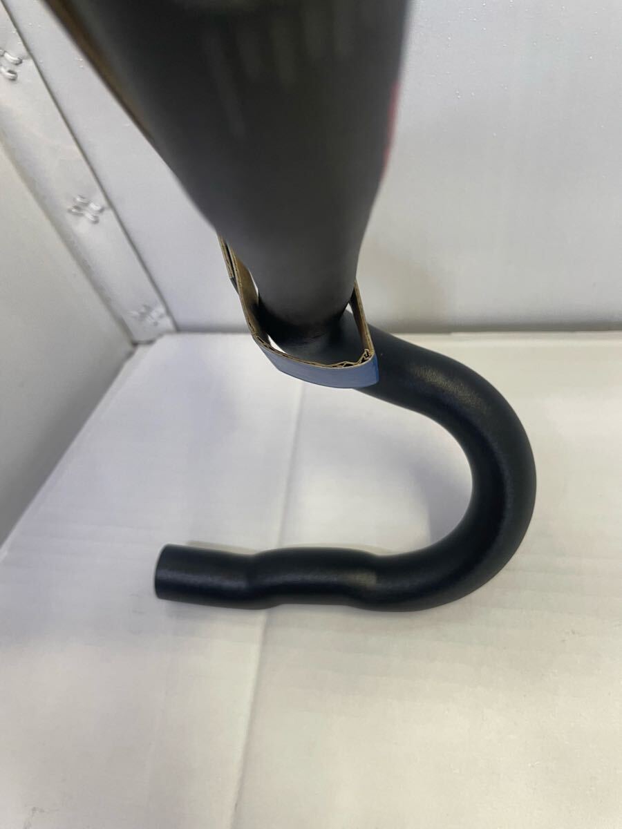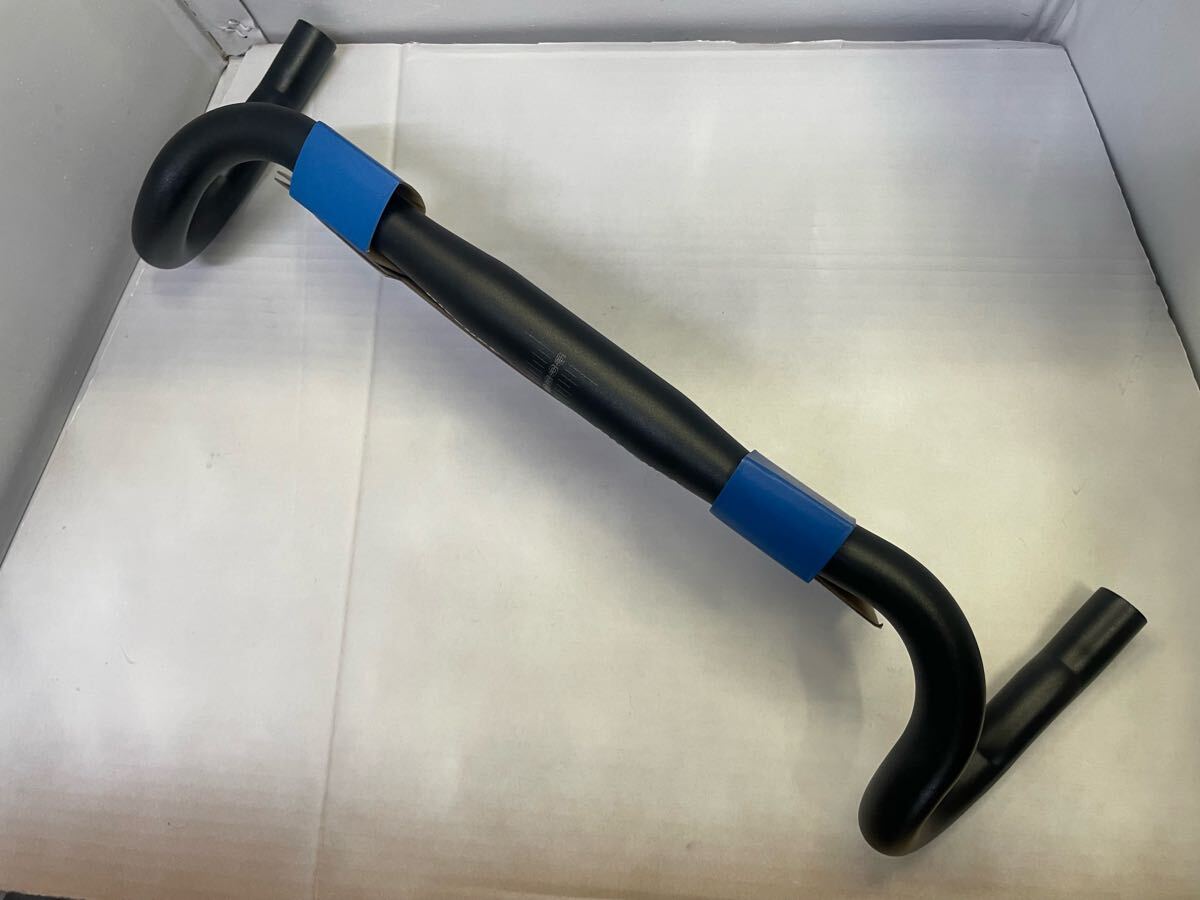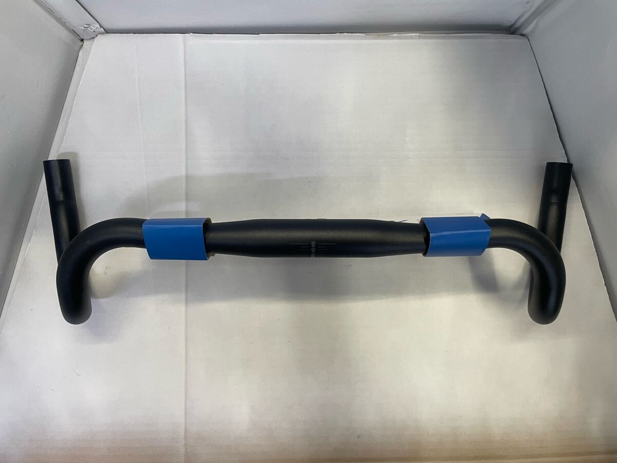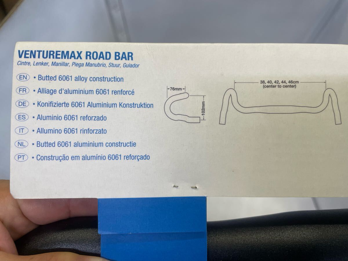 初期型のVENTUREMAXになります。現行バージョンとの違いはバートップ部分のパイプ形状が丸いのが初期型です。ドロップバー下部幅は、50.5cm(CtoC)と広めになっているので下ハンを握ってのオフロード下りでは安定感があります。ショートリーチ、ショートドロップもポジション差が少なくグラベルライドに最適です。