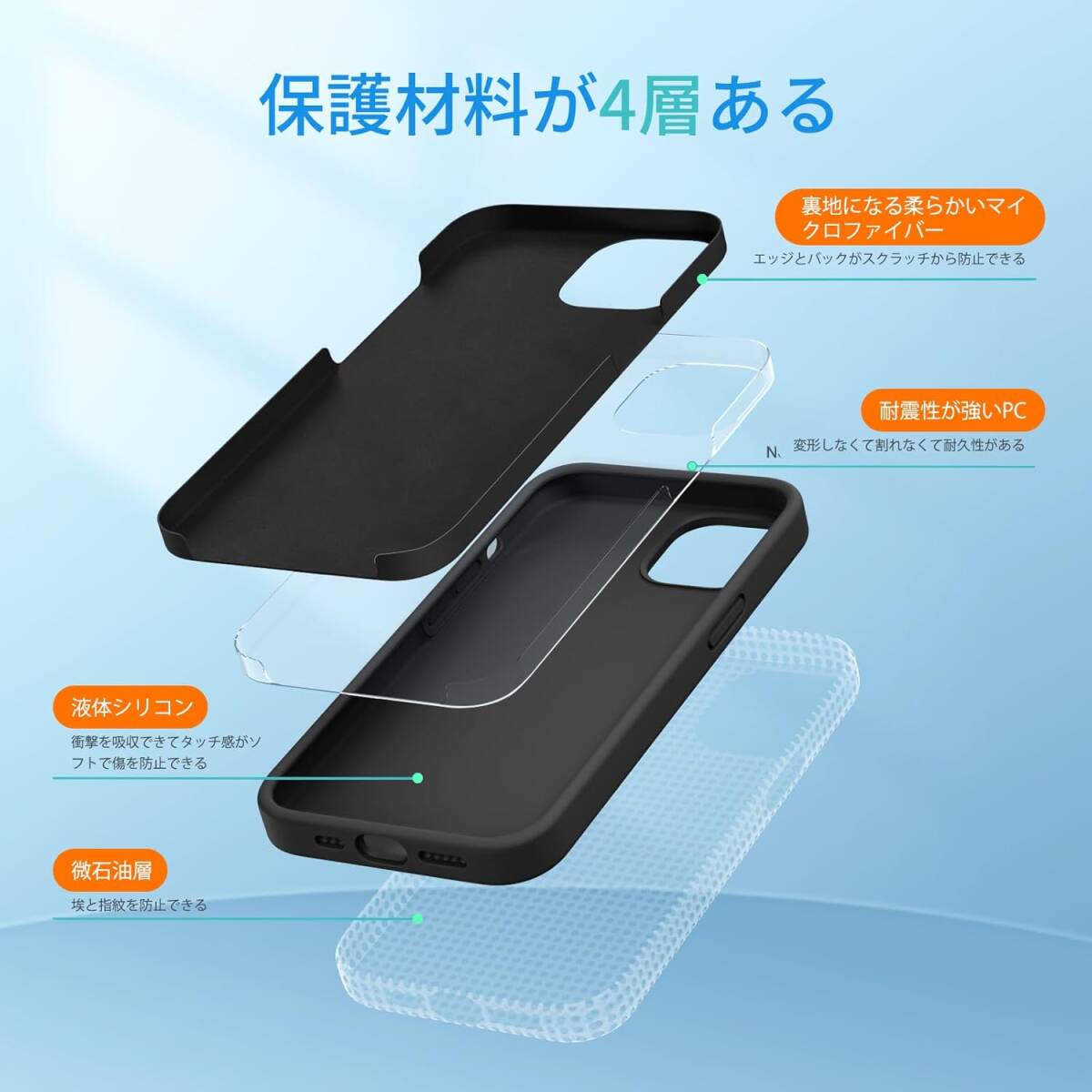 【超軽量&ハードケース】液状シリコンいphone13 ケースは薄くて軽いので、スマホのかさばり感を増やさない。このような軽くて便利な特性は、ユーザーにケースを装着しても不便を感じません。最も外側はシリコン材質を採用して、内側は硬いPCを使用してケースに良好な耐震性と衝撃に抵抗する能力を持たせて、十分な保護を提供すると同時に、取り付け・取り外しやすいです。