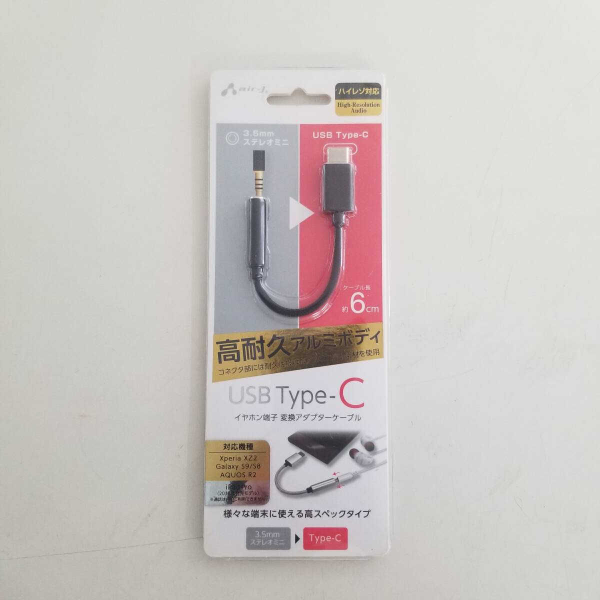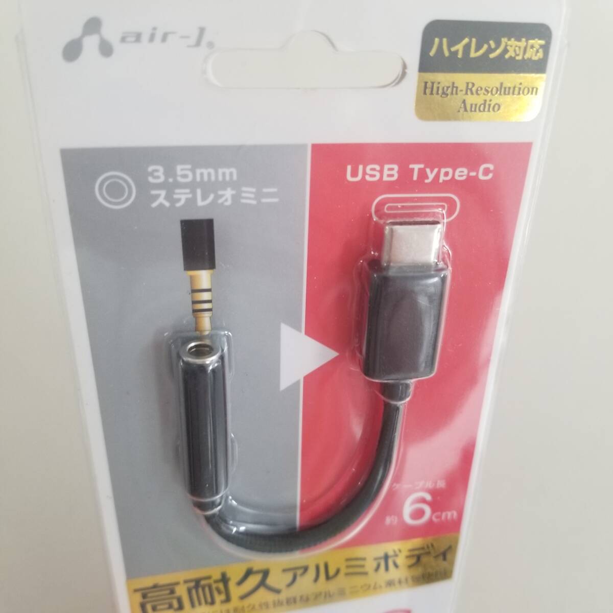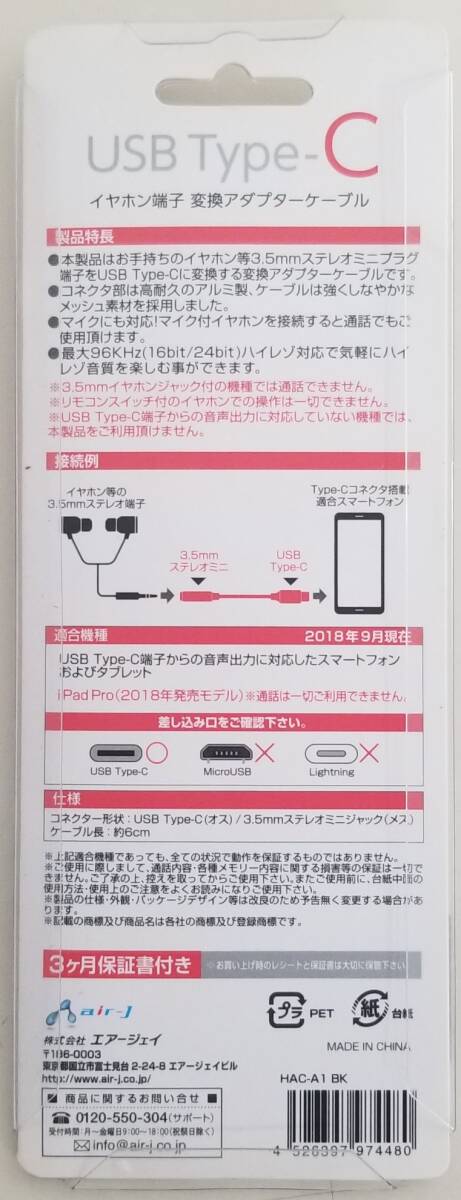 air-j エアージェイ 3.5mmステレオ USB TYPE-C イヤホン端子 変換アダプター ハイレゾ対応 ケーブル長 約6cm 高耐久アルミボディ HAC-A1BK | ||||||||