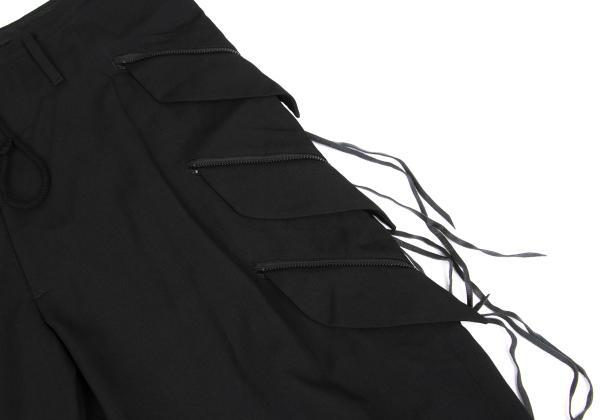 | ビーヨウジヤマモトB Yohji Yamamoto ウールギャバジップポケットテーパードパンツ 黒1 |