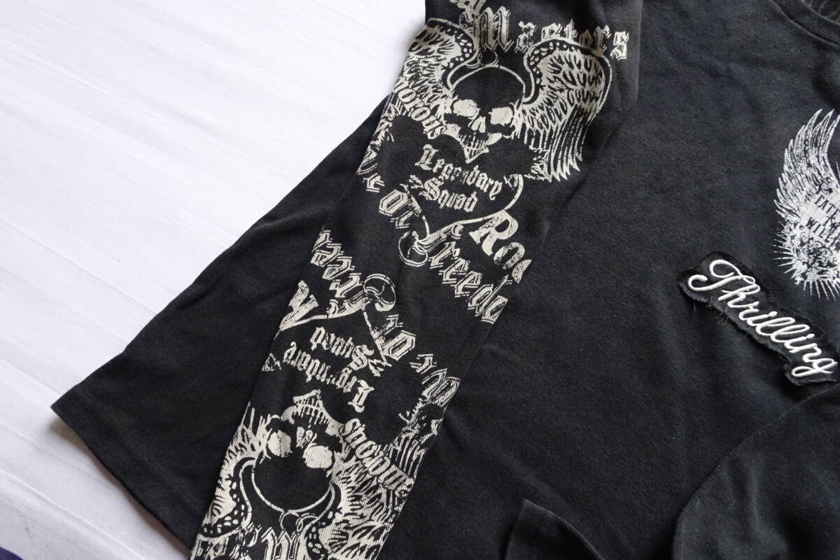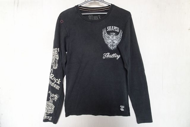 NEW WORKS EASY SCENE GOOD/長袖Tシャツ/ロンT/カットソー/ドクロ/スカル/ヴィンテージ風プリント/黒/ブラック/Mサイズ(6/9R7)