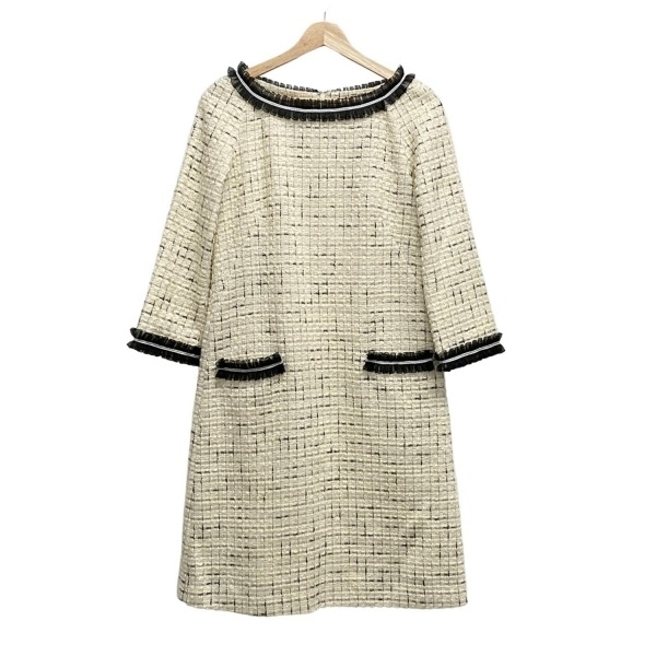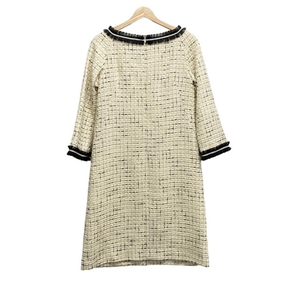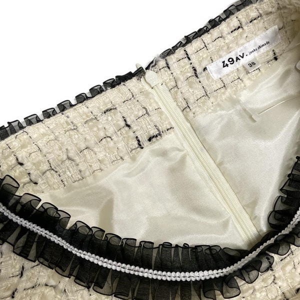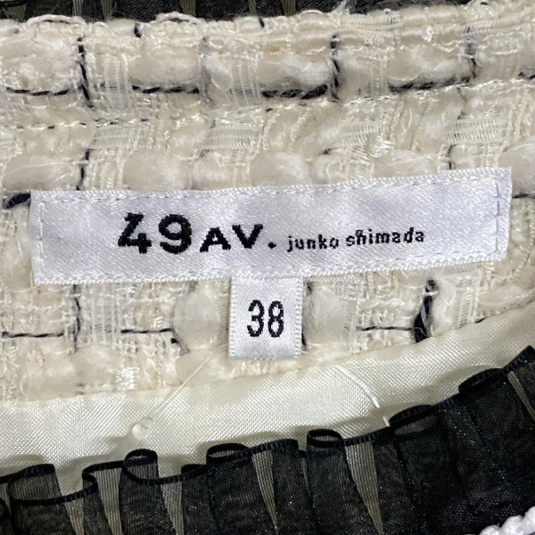 49アベニュージュンコシマダ 49av.Junko Shimada サイズ38 M - アイボリー×黒 レディース クルーネック/長袖/ロング/ツイード/フリル 美品