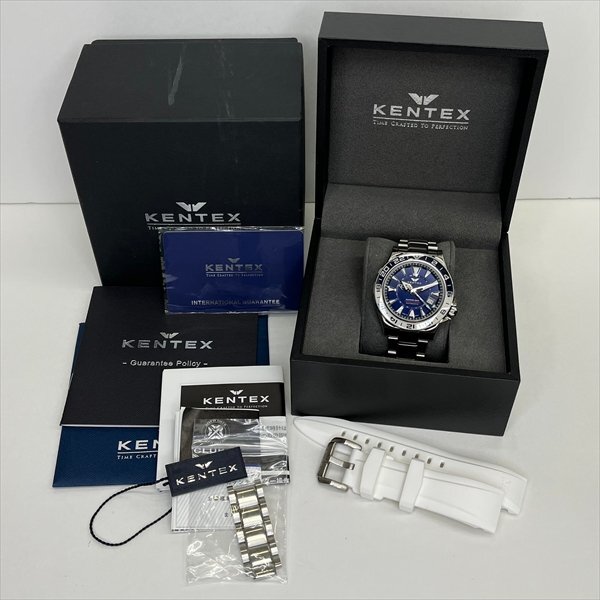 KENTEX ケンテックス マリンGMT ブルー 限定20本 S820X-10 メンズ腕時計 AT 自動巻き 紺文字盤 箱/コマ/替えバンド/保証書付き 稼働 極美品