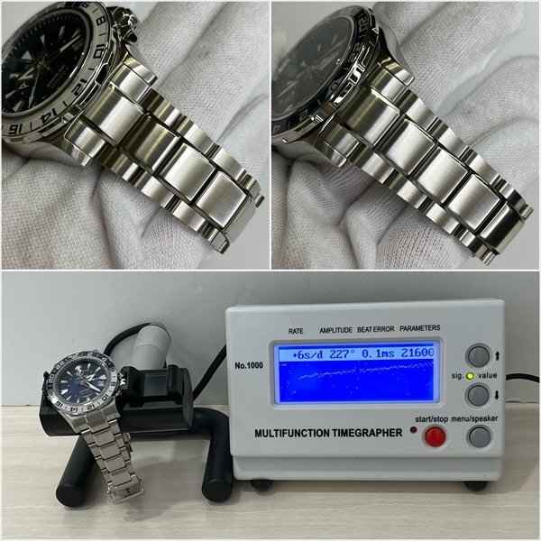 現在は稼動しており、リューズ操作にて日時・GMT変更可能で、