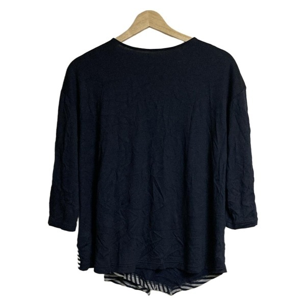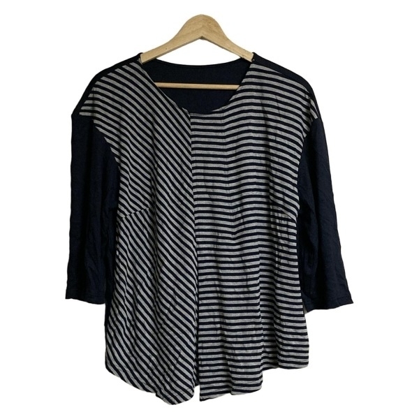 ヒロコビス HIROKO BIS 七分袖カットソー サイズ13AB L - グレー×ダークネイビー レディース クルーネック/ストライプ トップス
