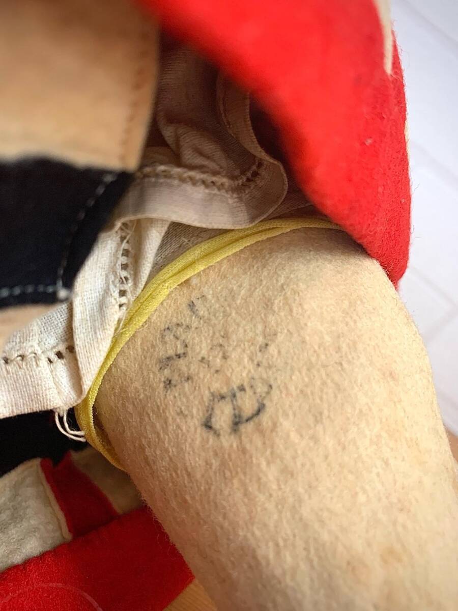 Lenci特有のフェルト構造で、手は親指のみ独立し、他の4本指が一体化したスタイルになっています。