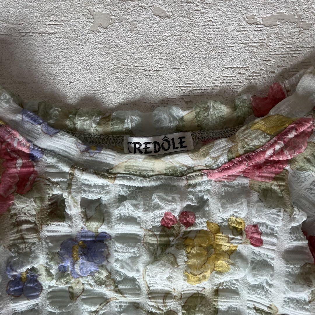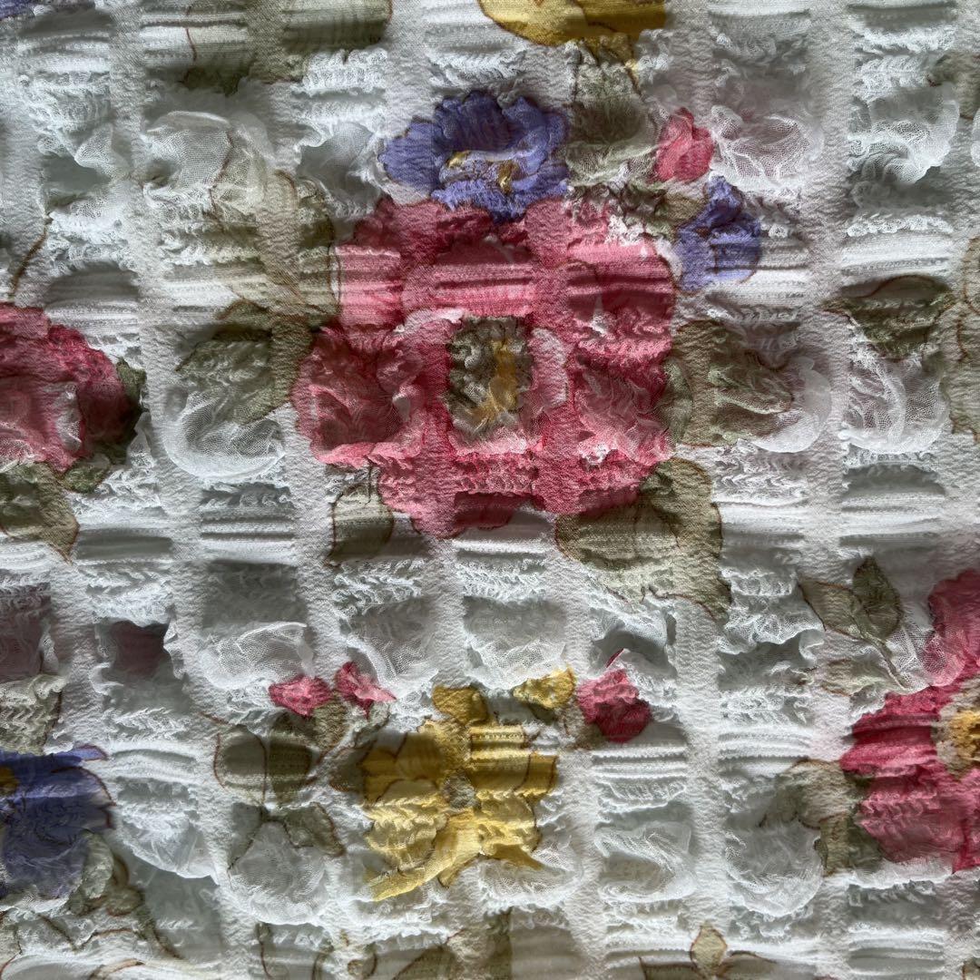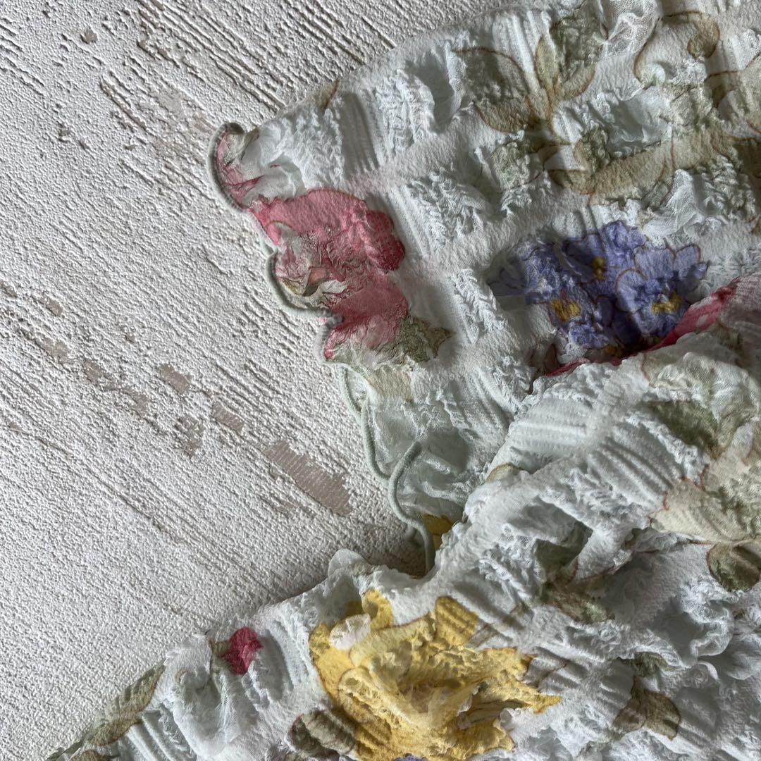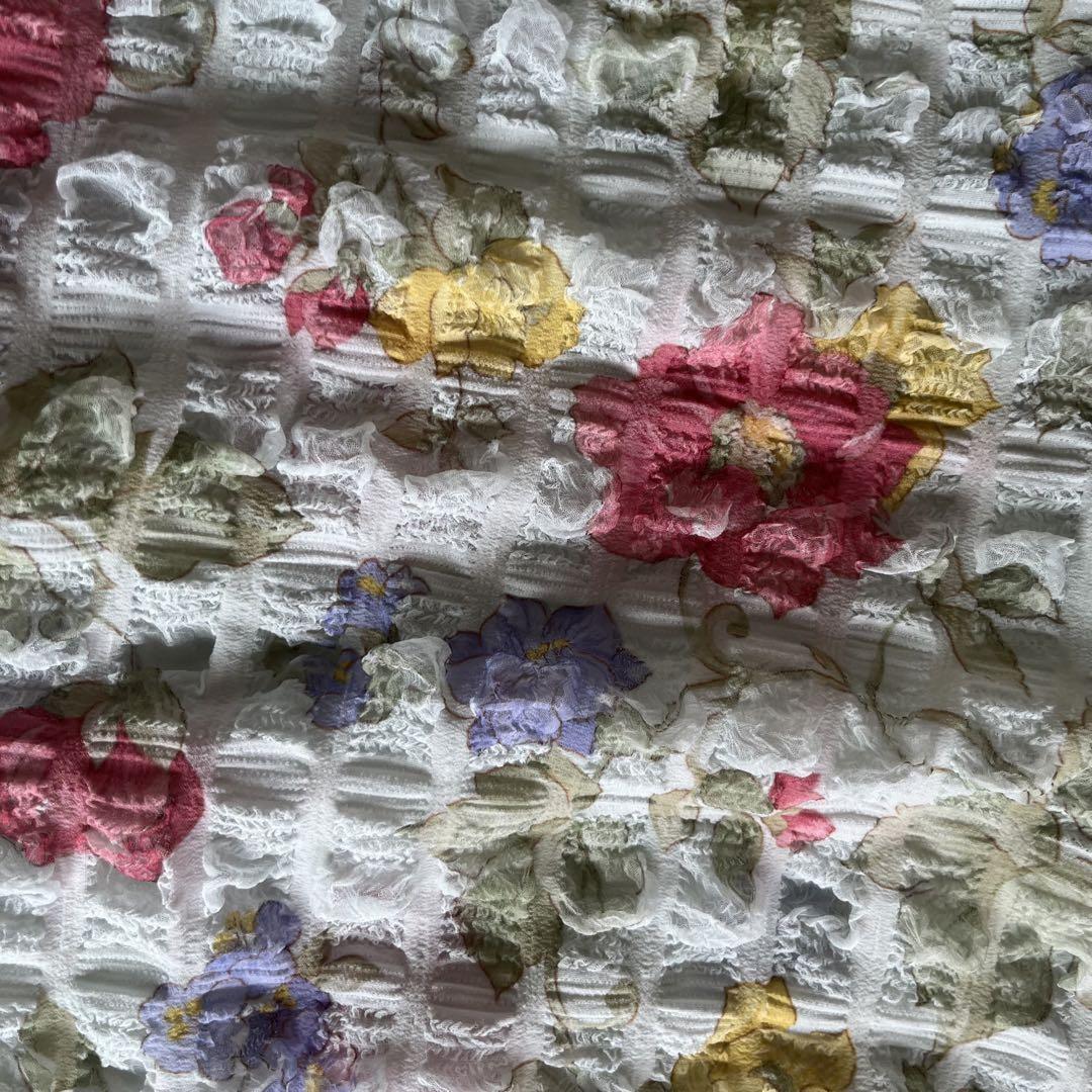 昭和レトロぽこぽこデザイン半袖カットソー花柄デザイン肩パッド付きブルーM-LL1