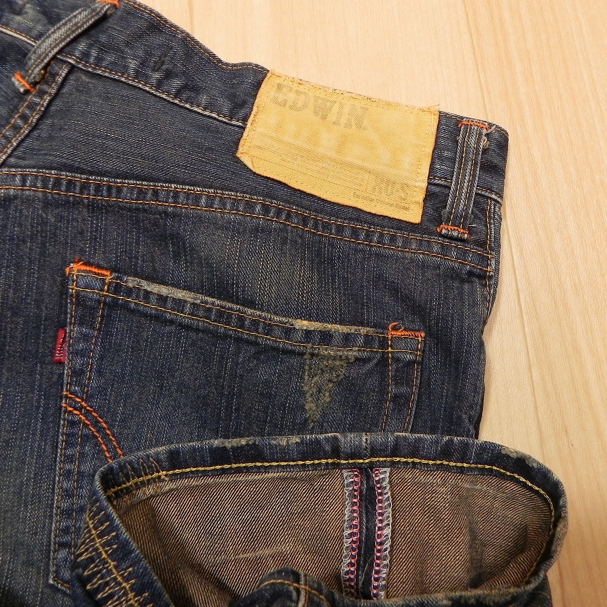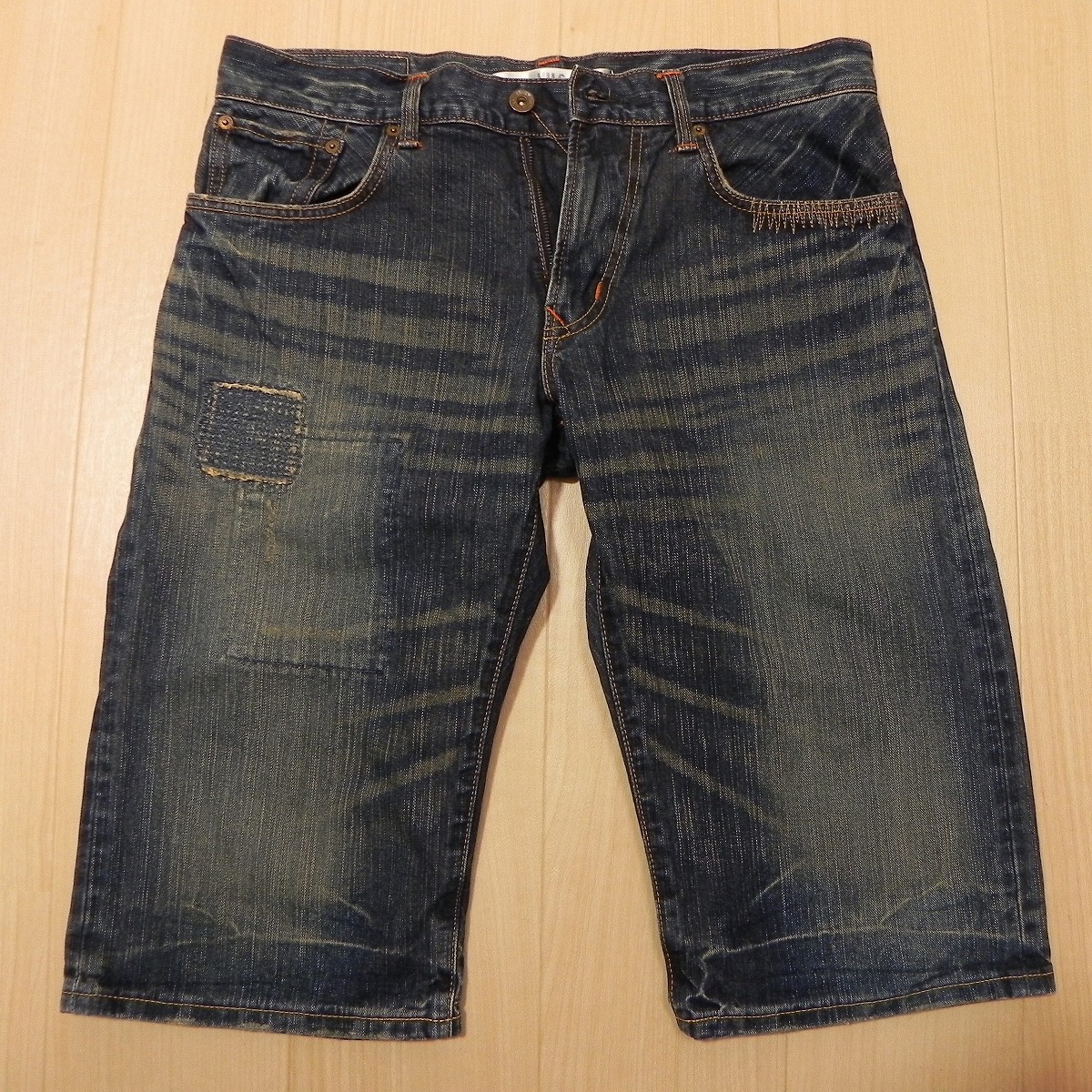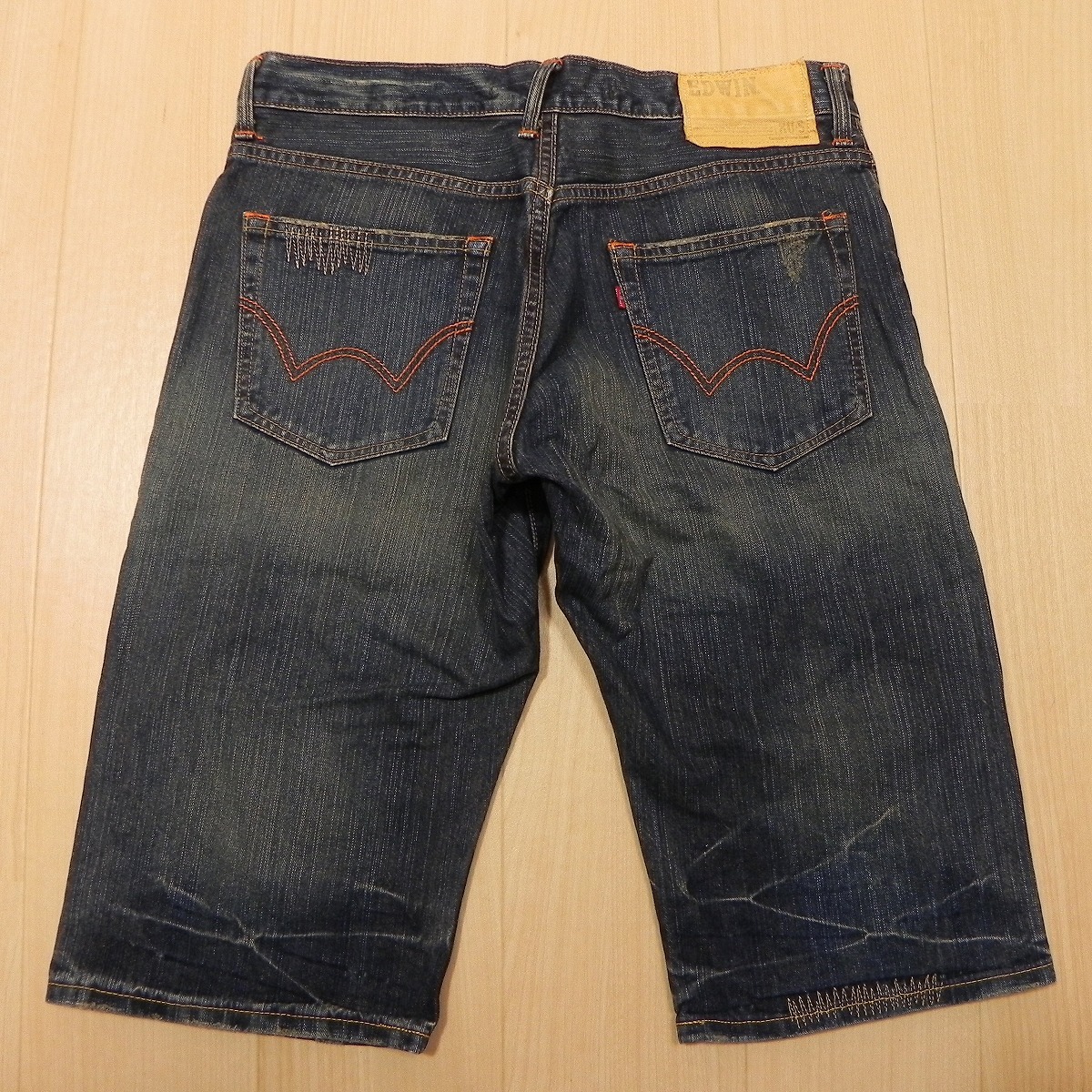 (910★ EDWIN エドウィン 4515 XV-S ダメージ加工 リペア加工 ユーズド加工 デニムショーツ ハーフジーンズ w32 古着 即決 ★
