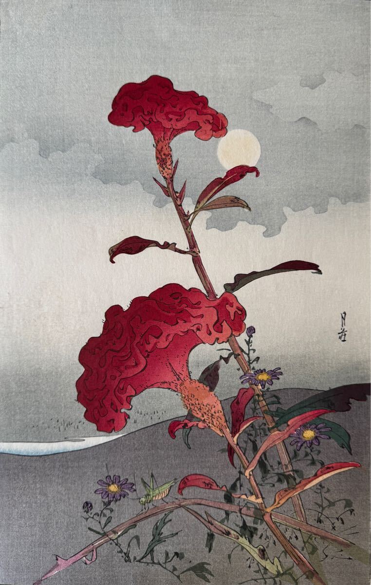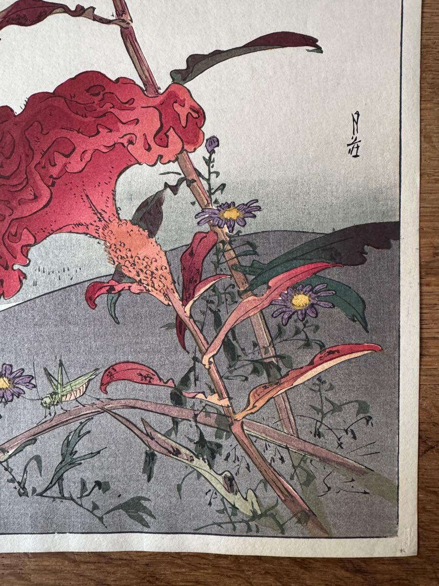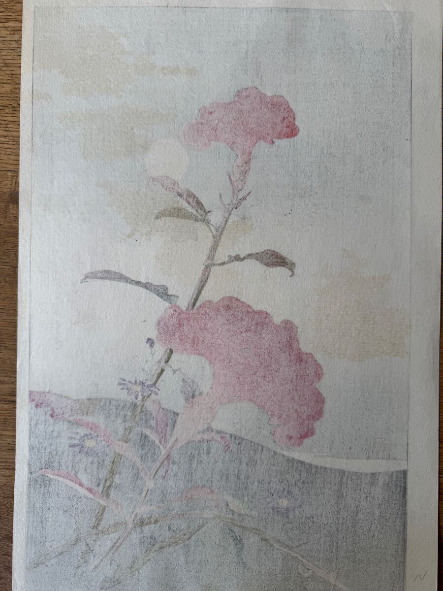 C【真作保証】吉本月荘 花鳥画2 手摺り木版画 後摺り 新版画 Yoshimoto Gesso woodblock print shinhanga