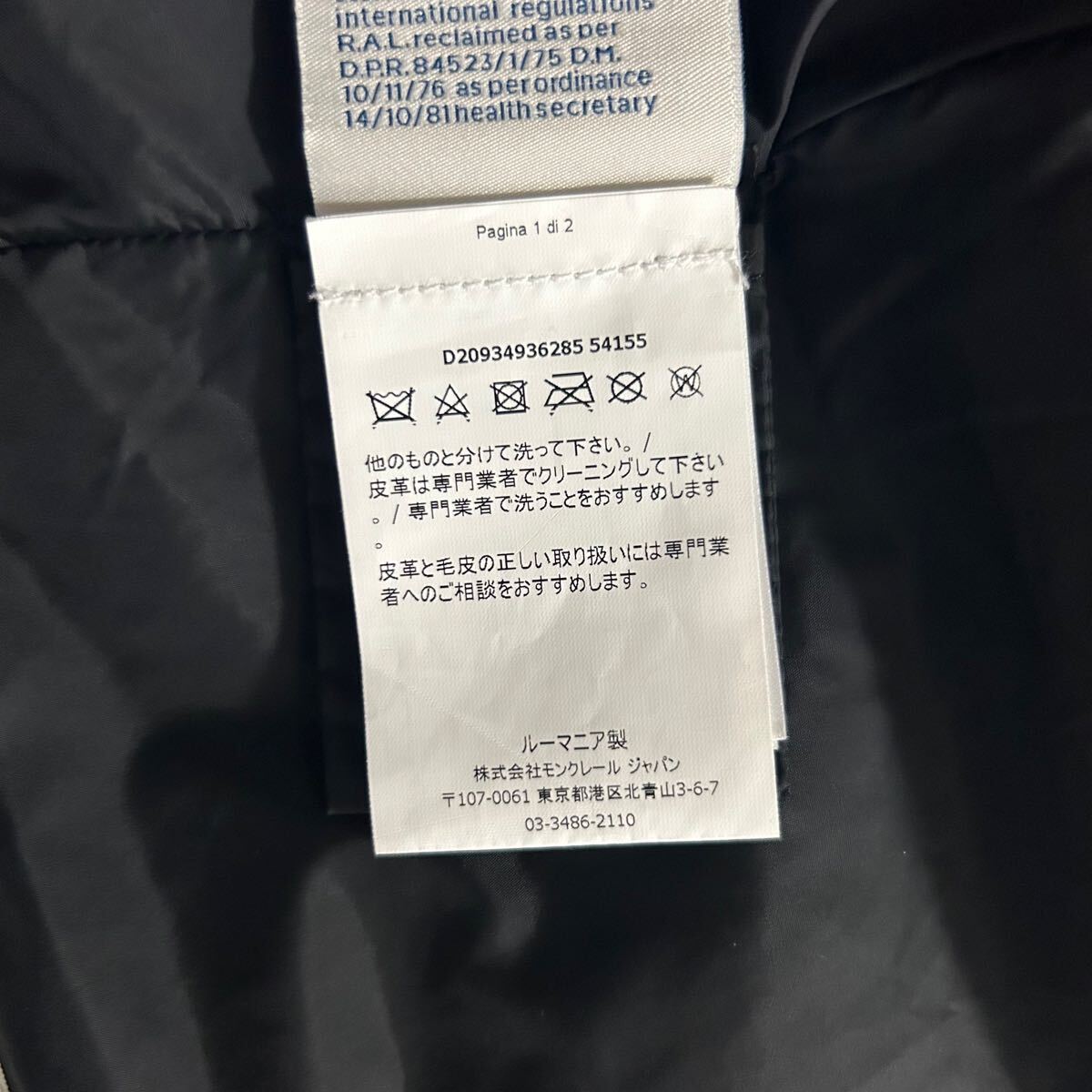 DISTタグ、品番タグ、モンクレールジャパンタグ、QRタグも付いていますので修理などは安心してモンクレールのお店にお出しいただけます。