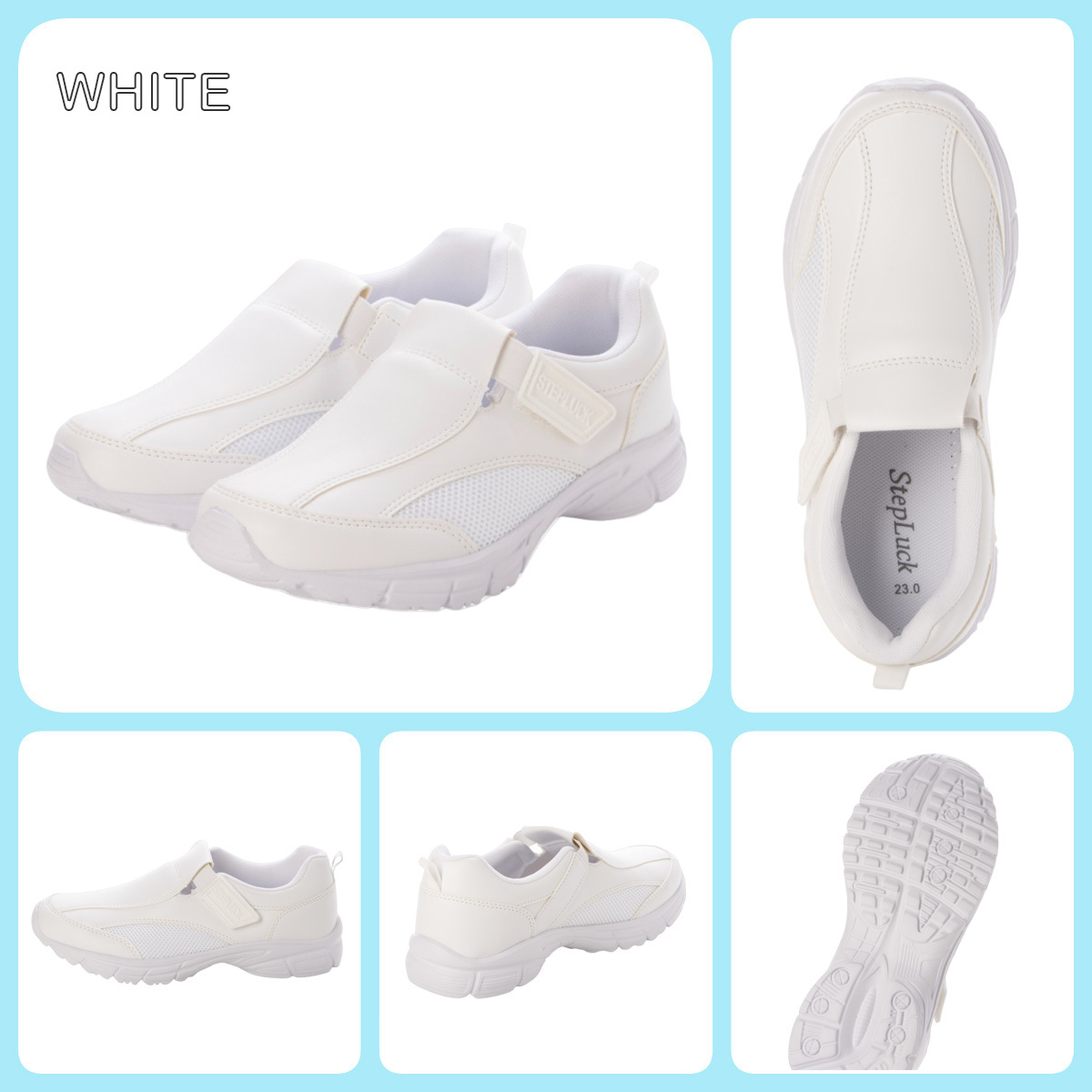ワーキングシューズ ルームシューズ ナースシューズ ベルクロ スニーカー スリッポン 看護師 介護士 男女兼用 25542-wht-250