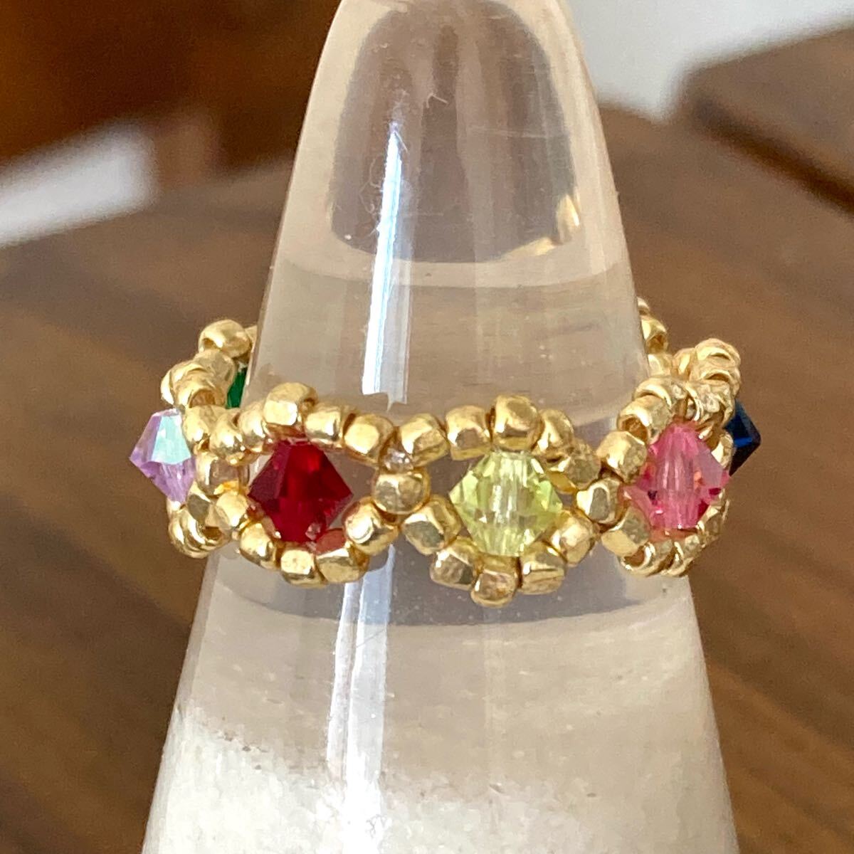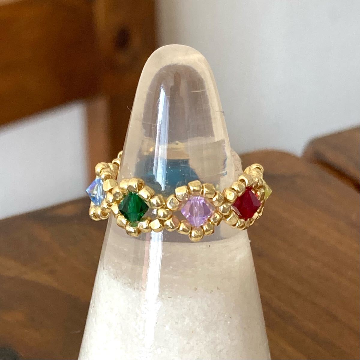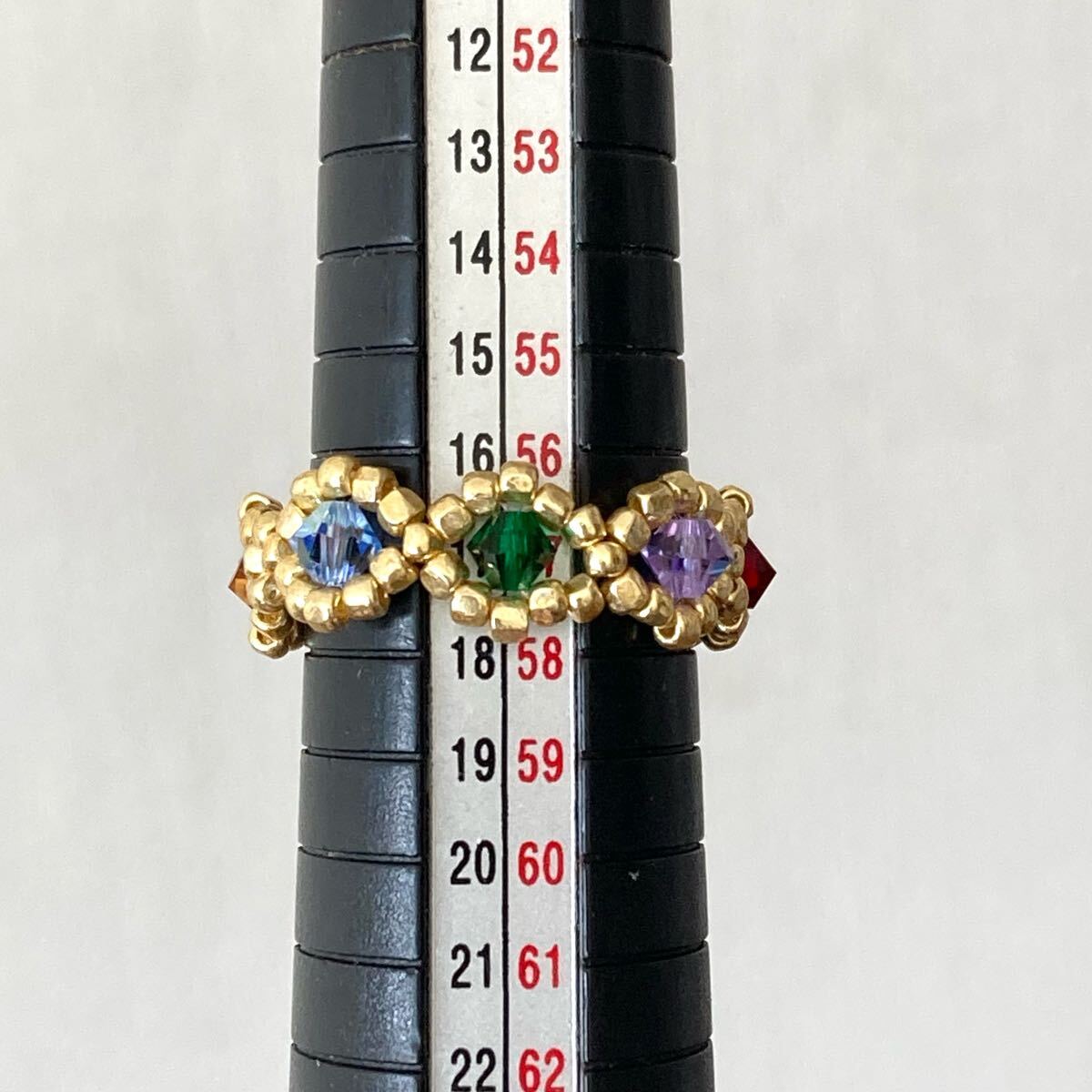 ビーズ リング  指輪 ハンドメイド カラフルなスワロフスキーのシンプルリング 16-18号です。
