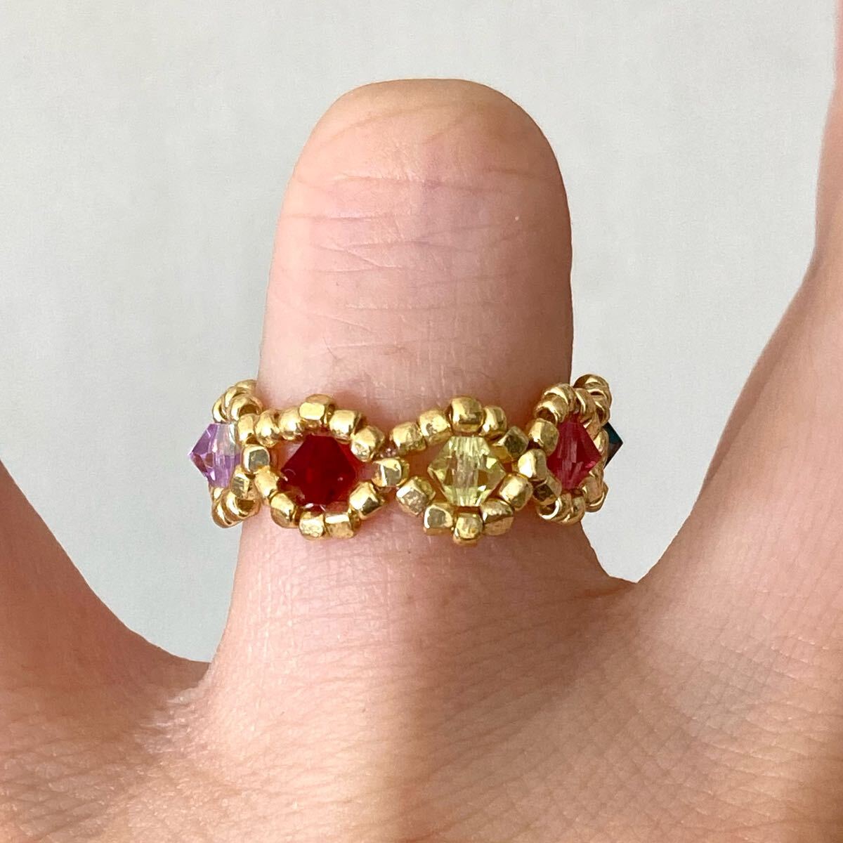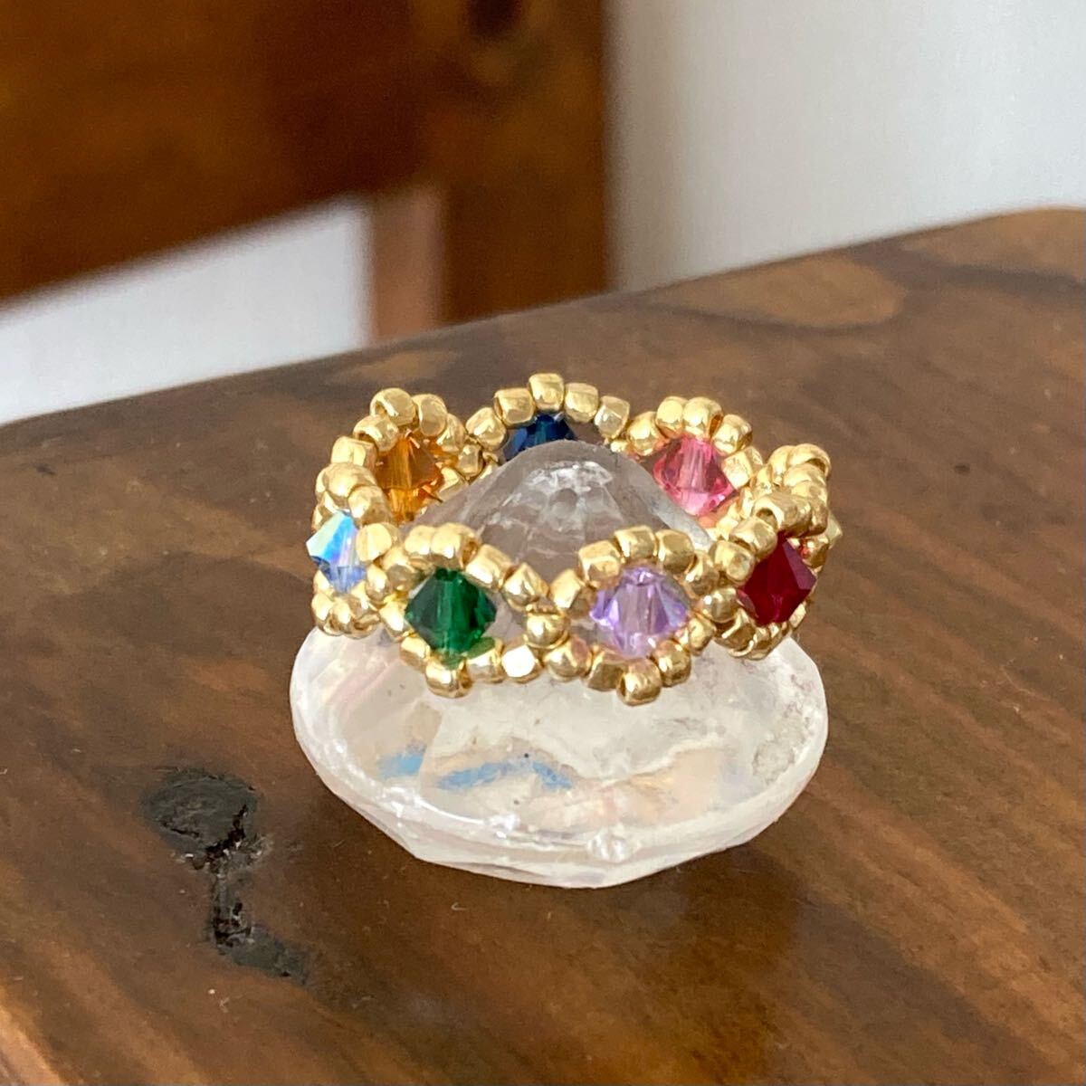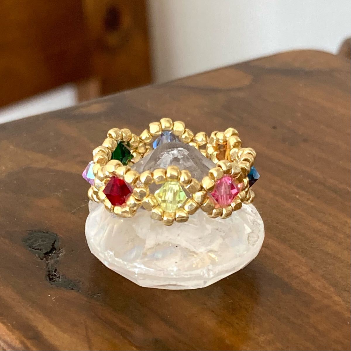 ビーズ リング  指輪 ハンドメイド カラフルなスワロフスキーのシンプルリング 16-18号です。