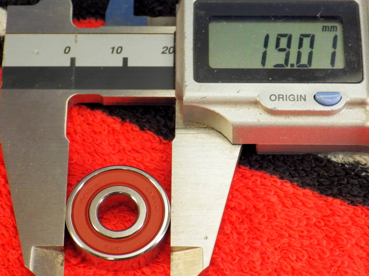 フロントベアリングのサイズは外径φ19ミリ・内径φ7ミリ・厚み6ミリです。