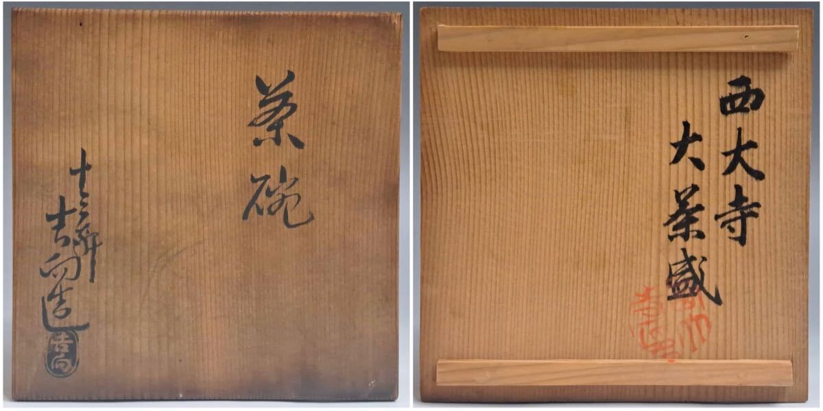 恐らく七代吉向十三軒の作品と思われます。共箱蓋裏には西大寺大茶盛とあり、陶印には吉向と西大寺とございます。