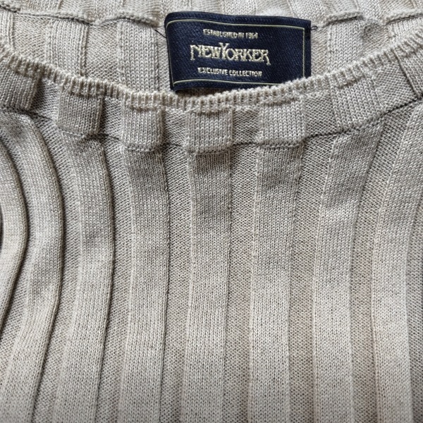 ニューヨーカー NEW YORKER サイズL - ベージュ レディース クルーネック/半袖/ロング/ニット 美品 ワンピース