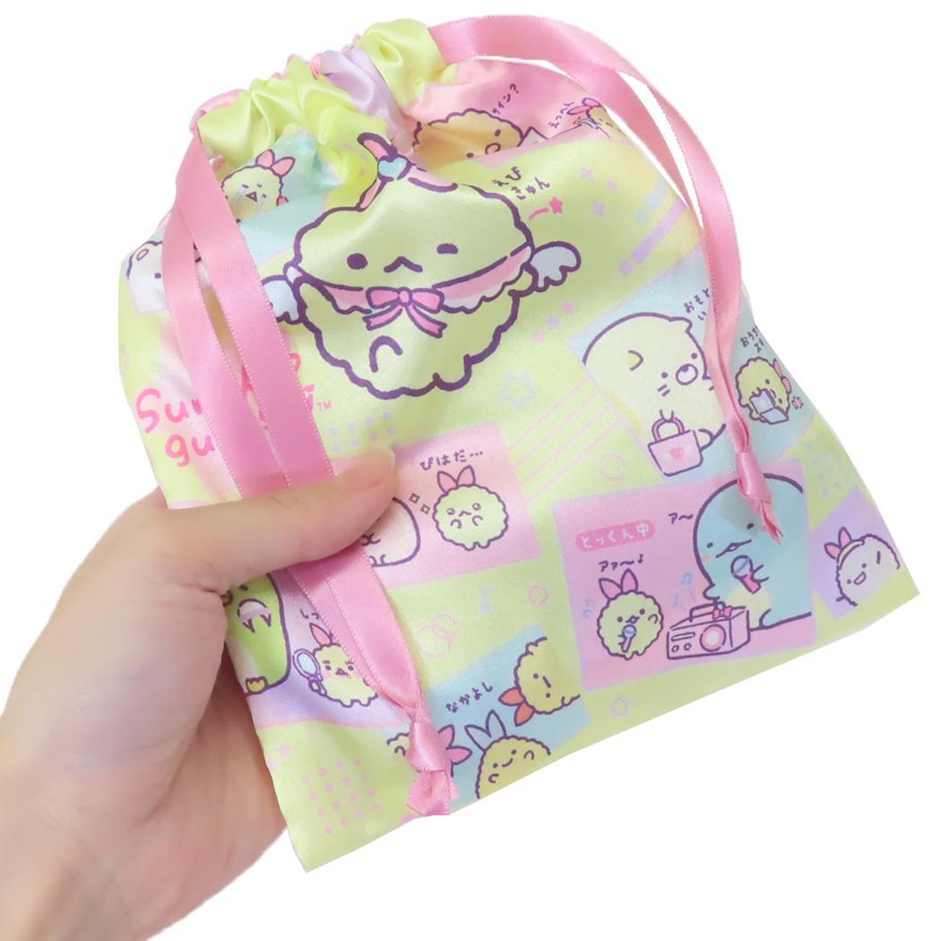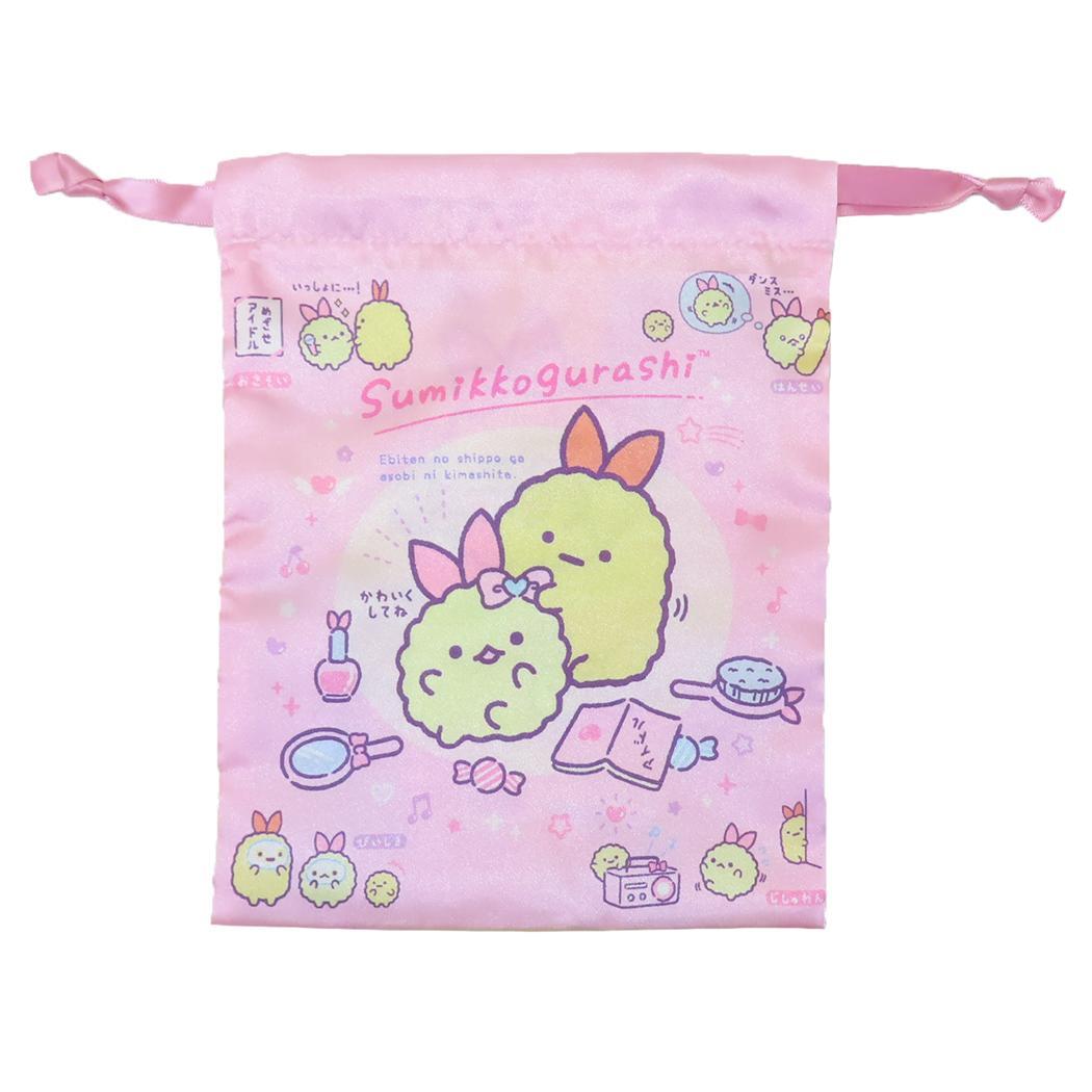 すみっコぐらし 巾着袋 リボン巾着 きんちゃくポーチ 天使なえびてんアイドル サンエックス スモールプラネット 小物入れ キャラク