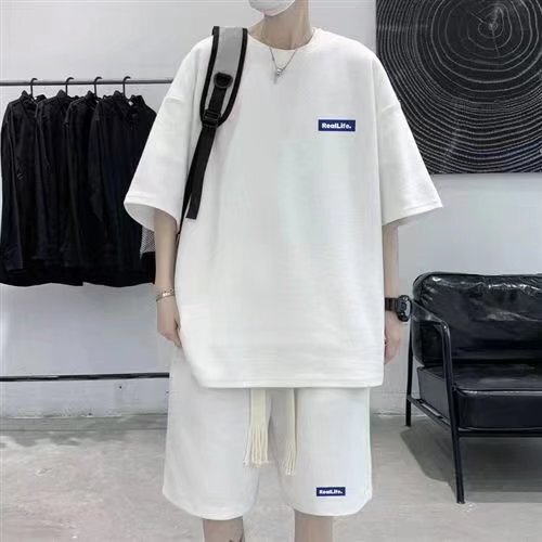 夏 カジュアル 半袖シャツ ショートパンツ 韓國ファッション セットアップ 上下セット メンズ ホワイト M