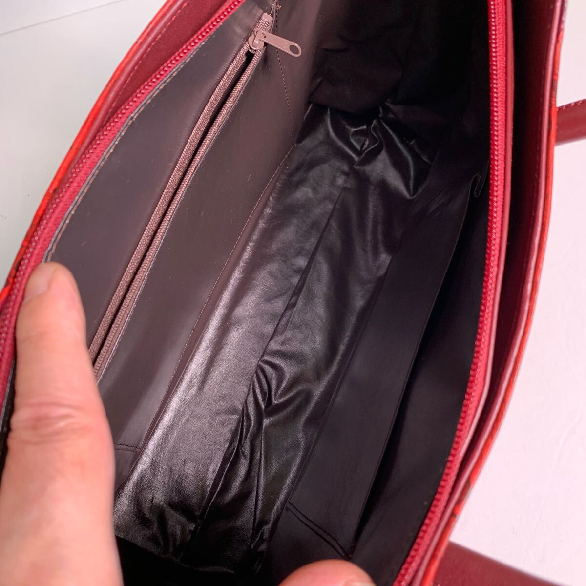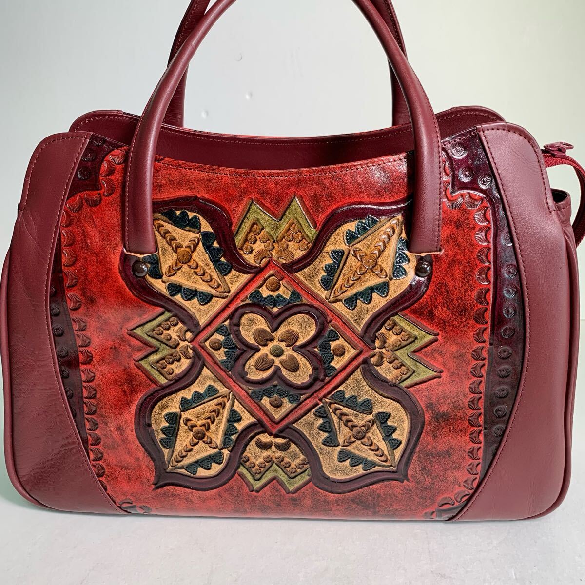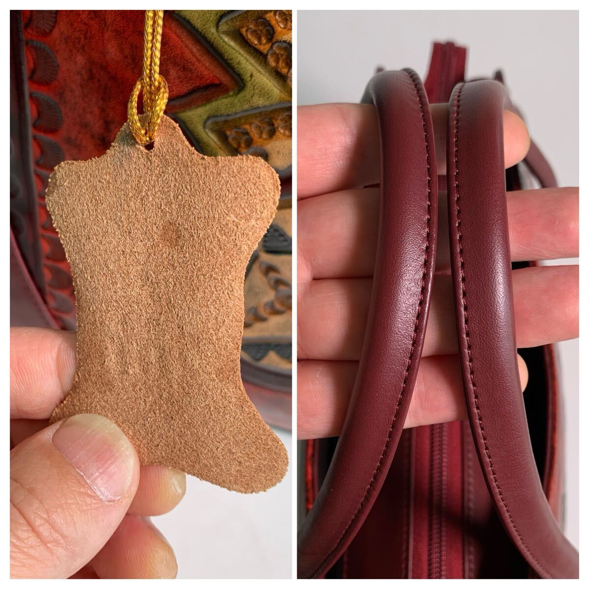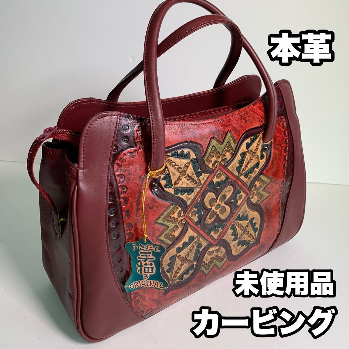 本革製の未使用カービングトートバッグ、うきだし手描きのデザインが特徴。