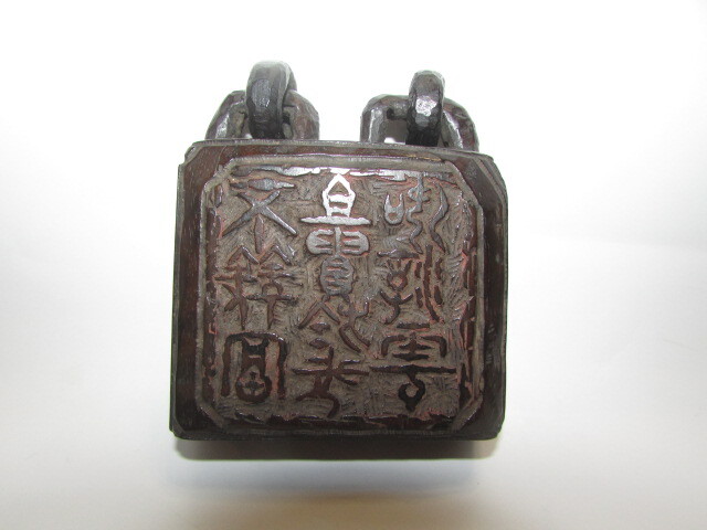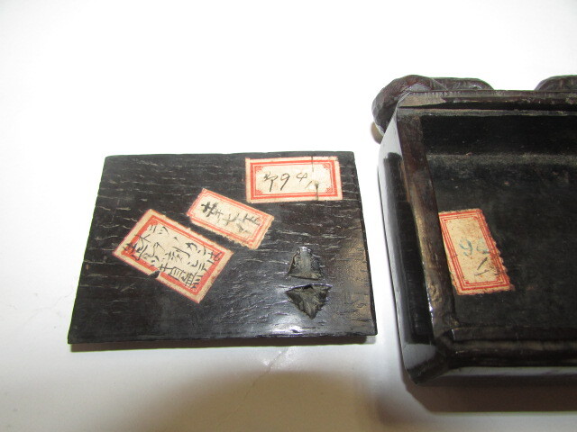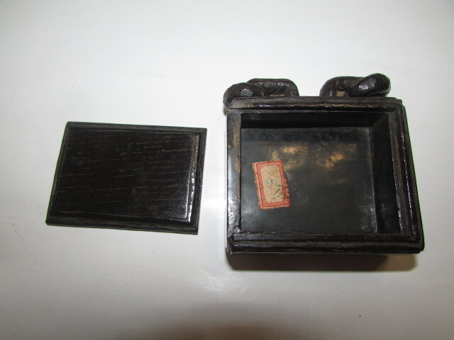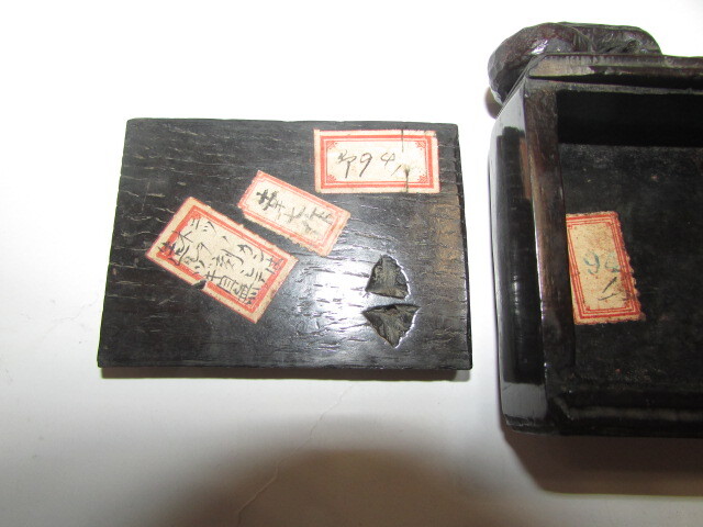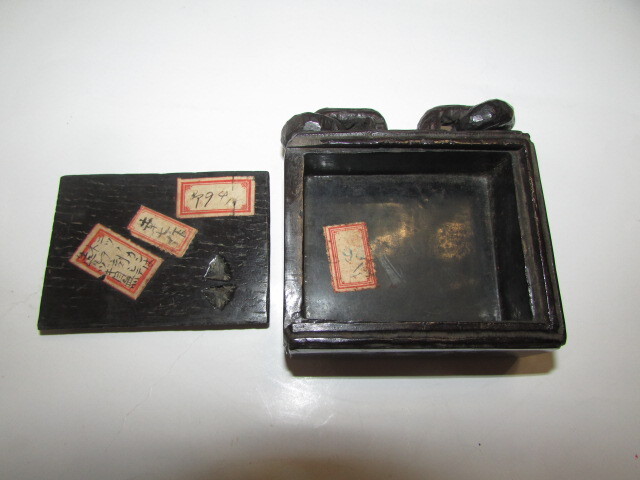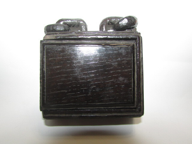 即決会津若松・旧家・蔵出し明治時代・作家物・幸七作(古い味わいのある堅木で彫られた小箱・漢詩の様な文字が彫られています)貴重・珍品