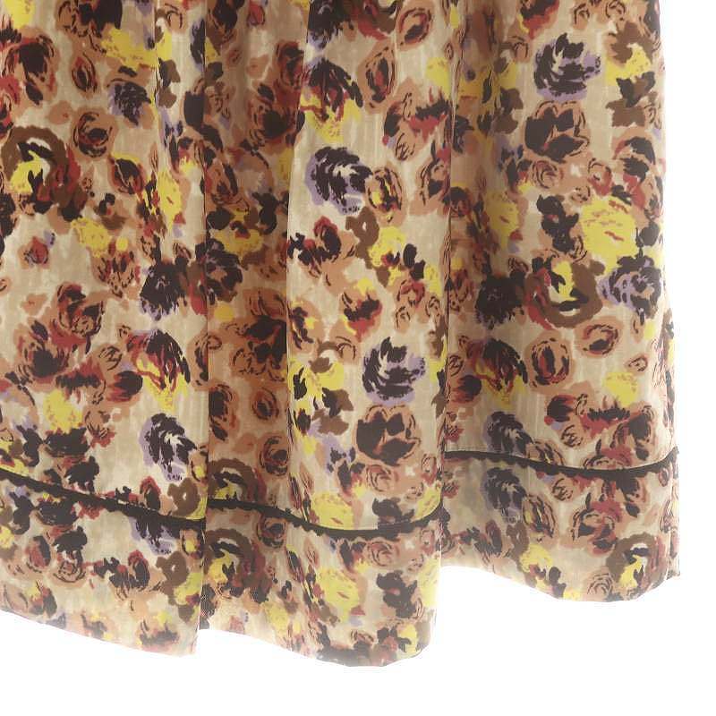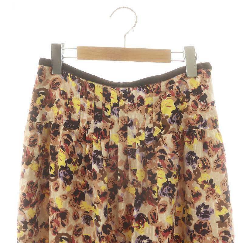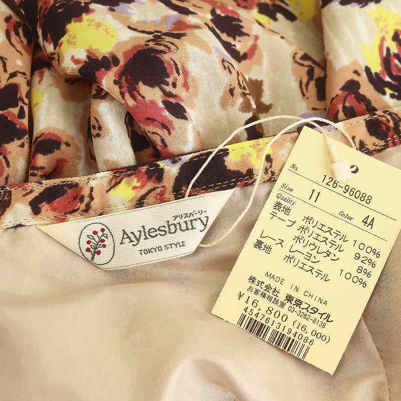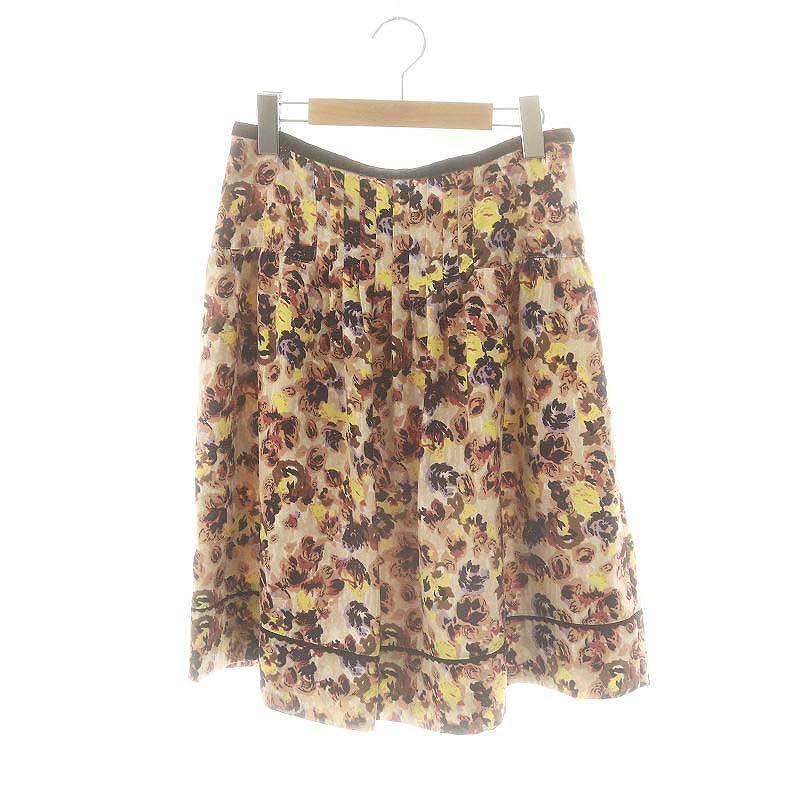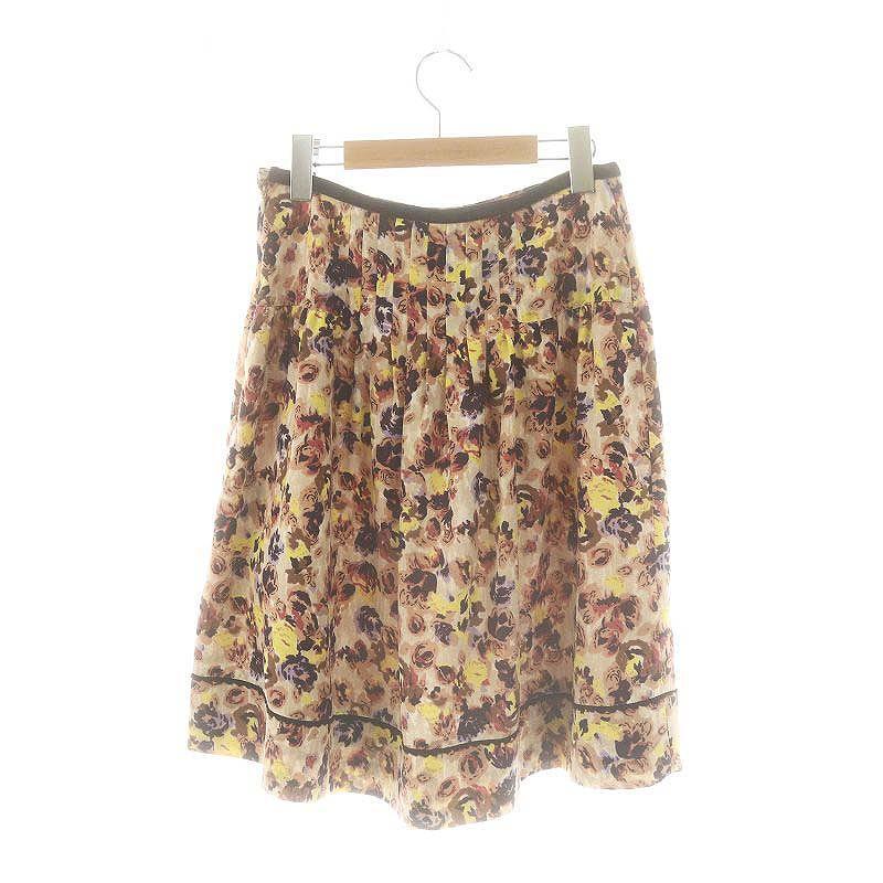 未使用品 アリスバーリー Aylesbury 花柄 タックスカート フレア ひざ丈 11 ベージュ /AT ■OS レディース