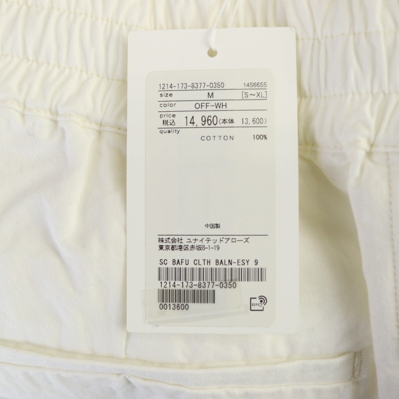 未使用品 ユナイテッドアローズ ビューティー&ユース タグ付き バフクロス バルーンイージー パンツ ワイドシルエット M 白 ホワイト