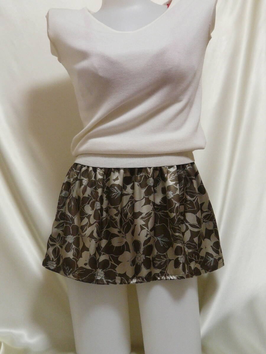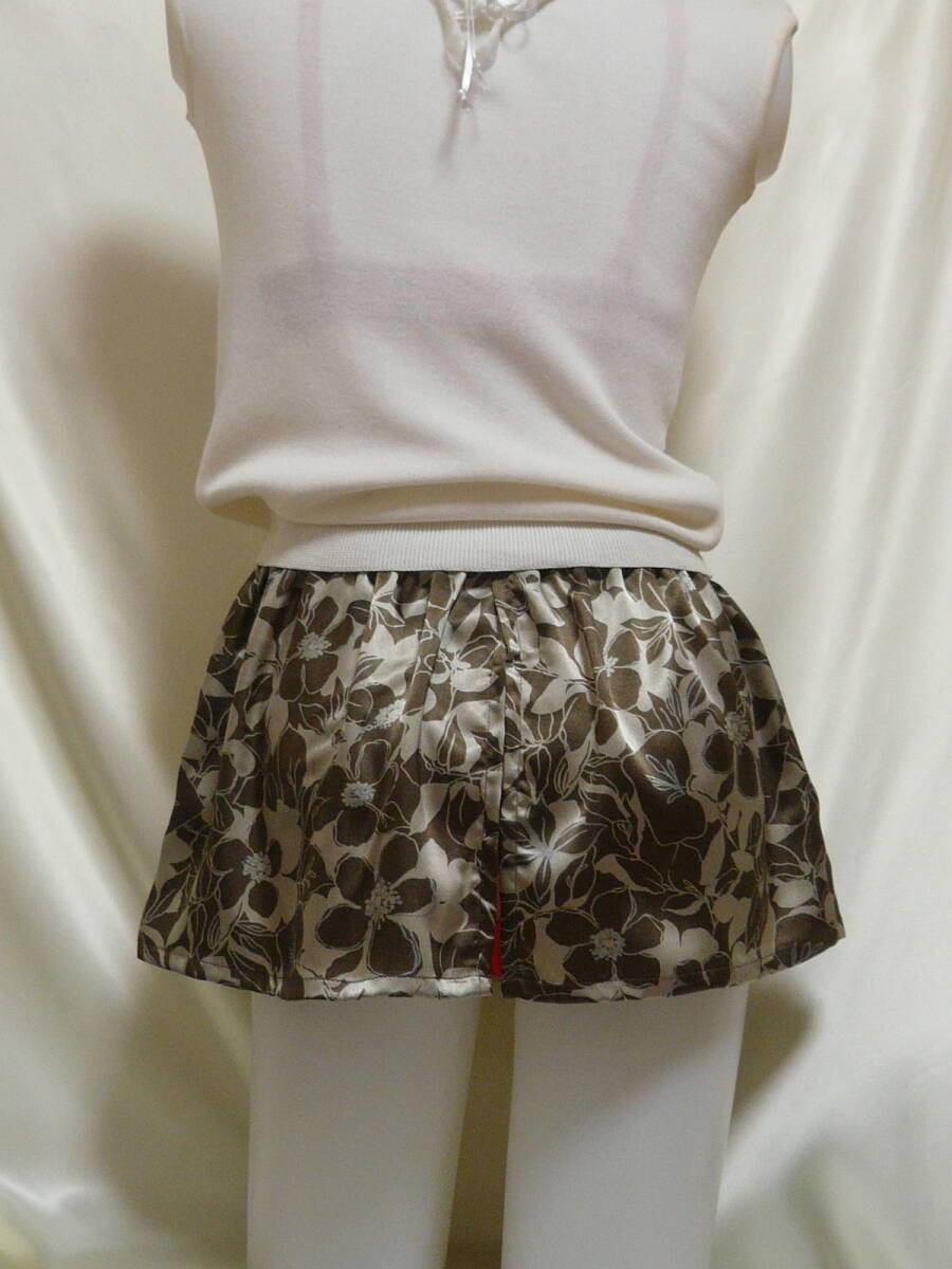 ♪♪こげ茶色お花柄サテン系の超マイクロミニ☆おしりスリット開放感^^♪♪