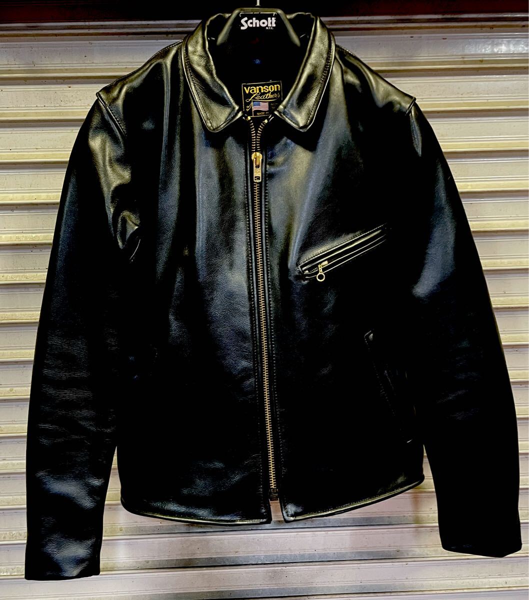 商品名 : VANSON ENF シングル ライダース ブラック | シングルライダース メンズ アメリカ製 MADE IN USA エンフィールド 襟付 レザージャケット アウター 革ジャン 牛革 本革 カウハイド 内ポケット 定番 黒 サイズ42