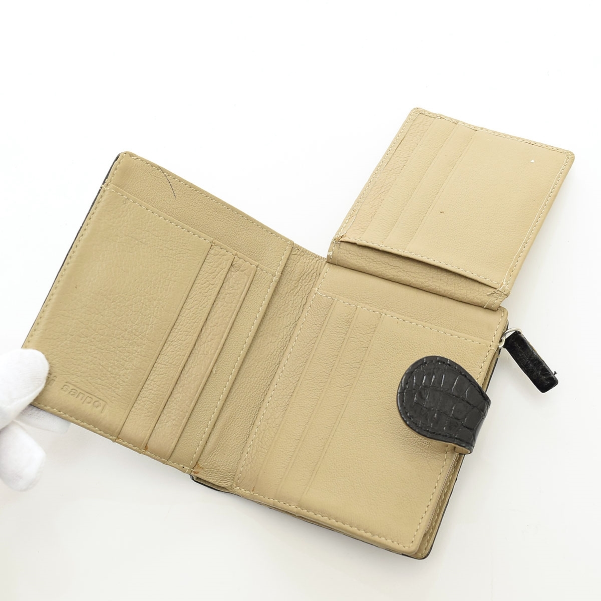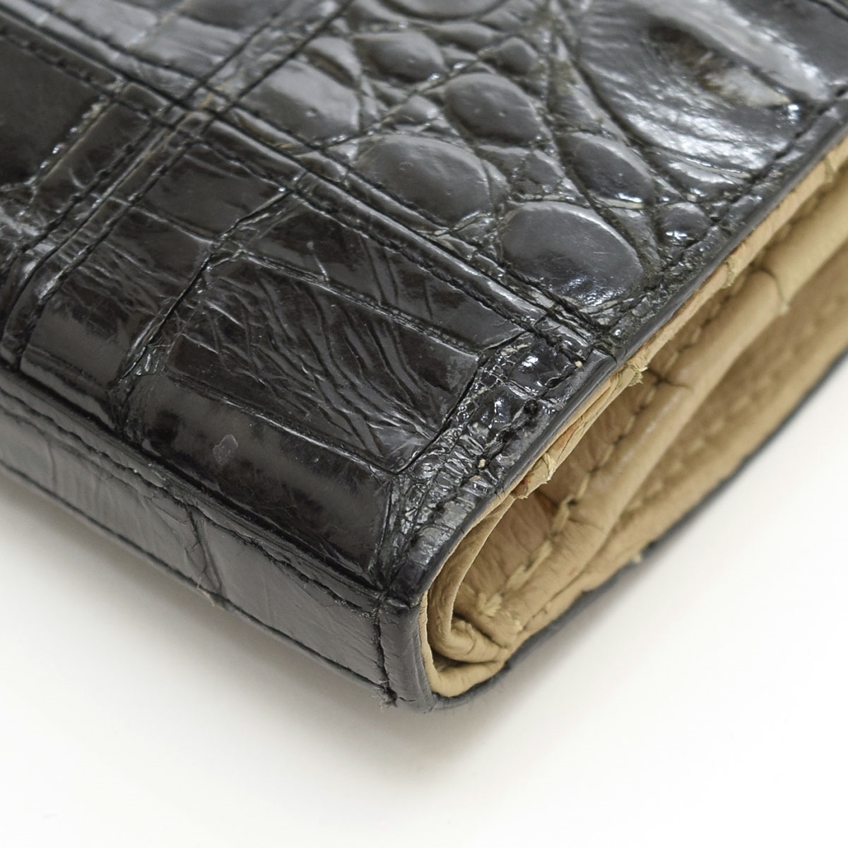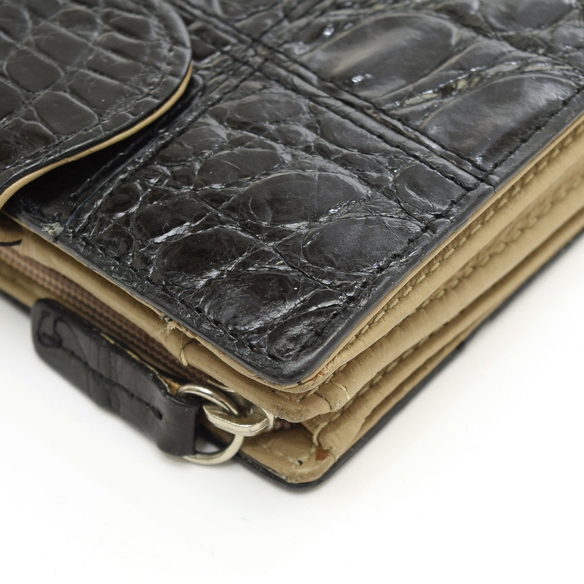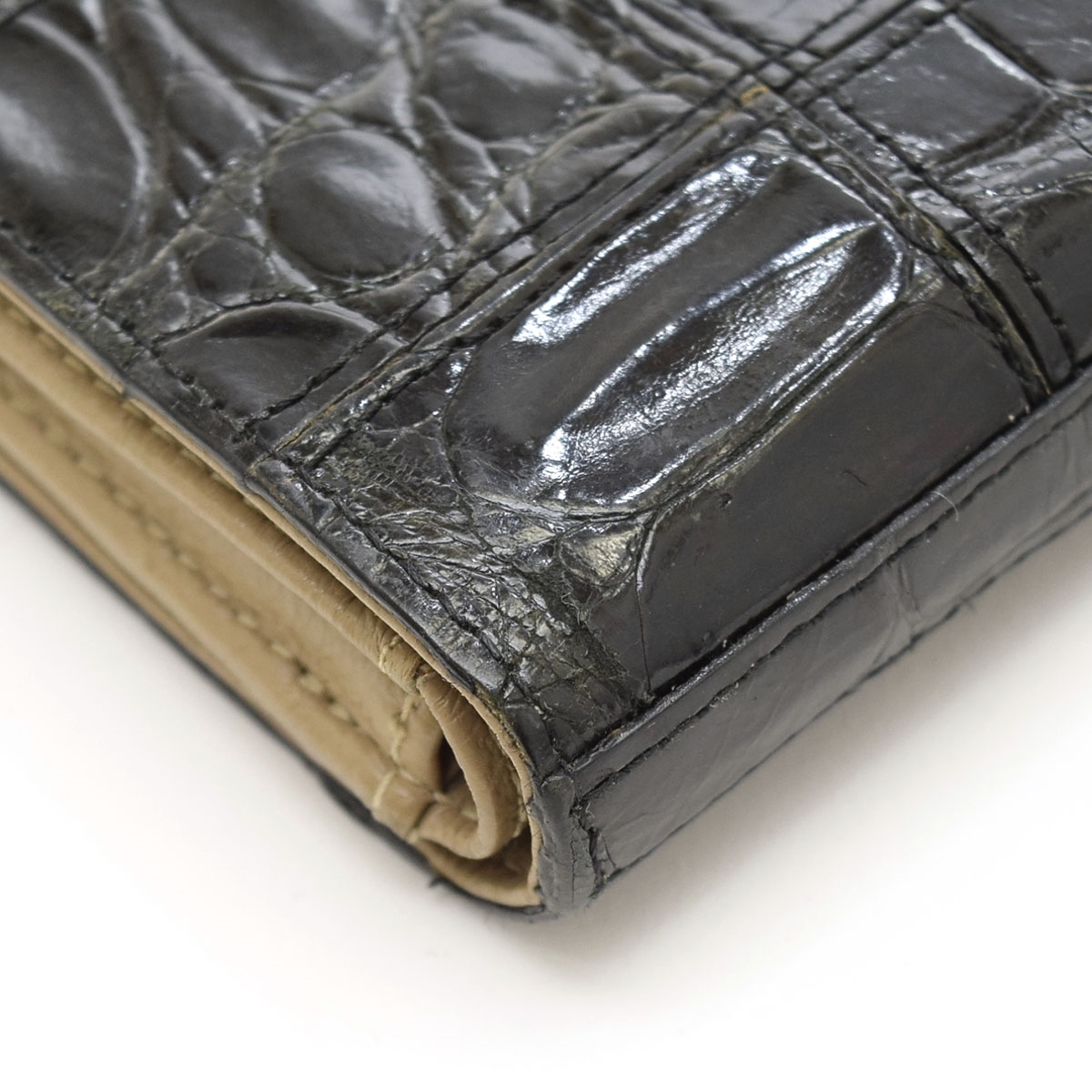 ■519920 iii SANPO 三宝 ●二つ折り財布 パッチワーク クロコダイル ウォレット レディース ブラック