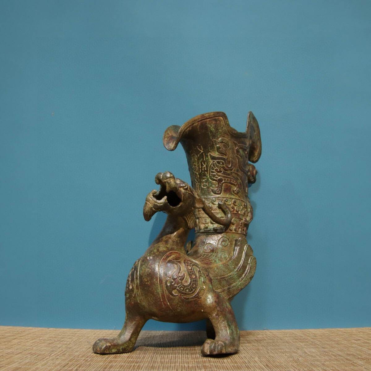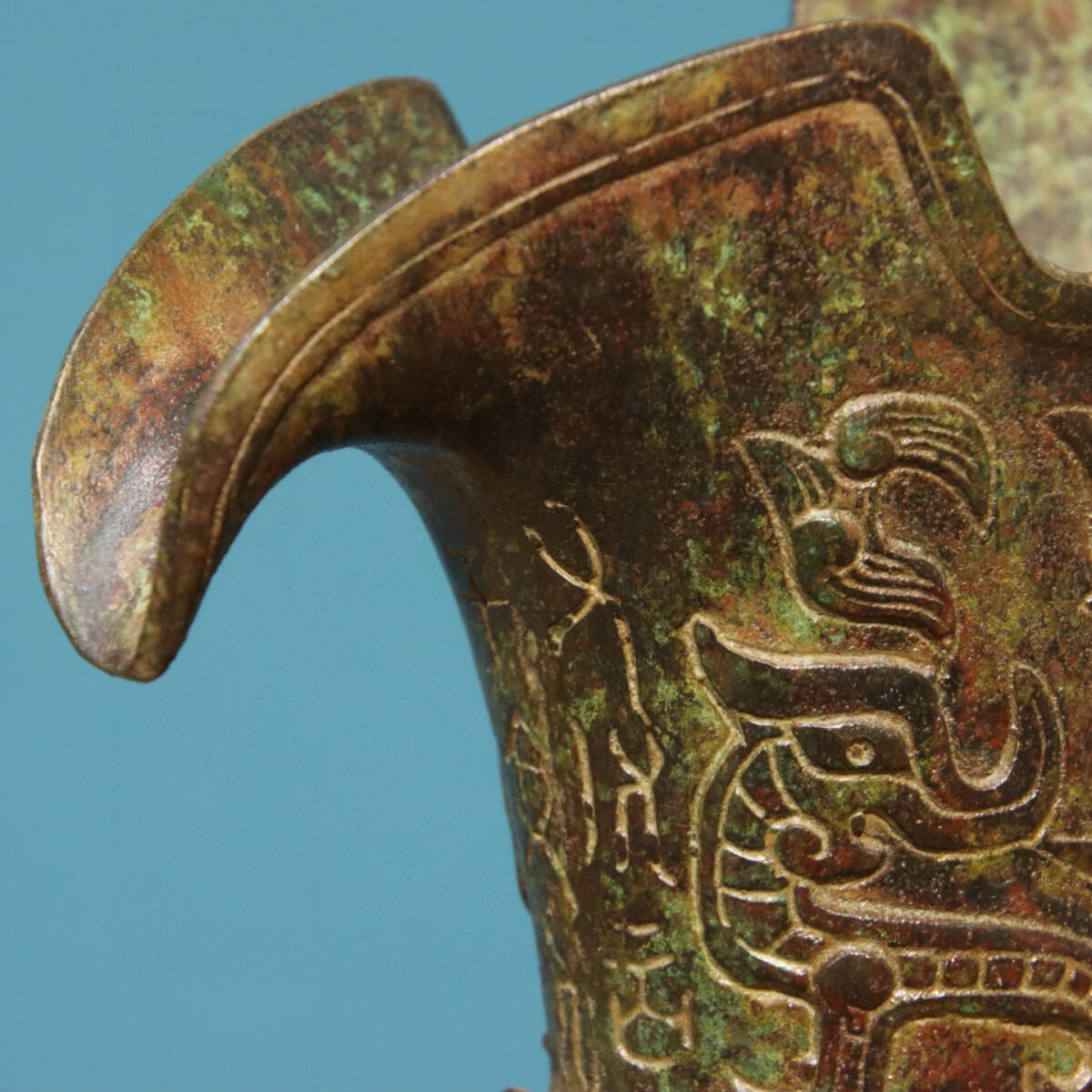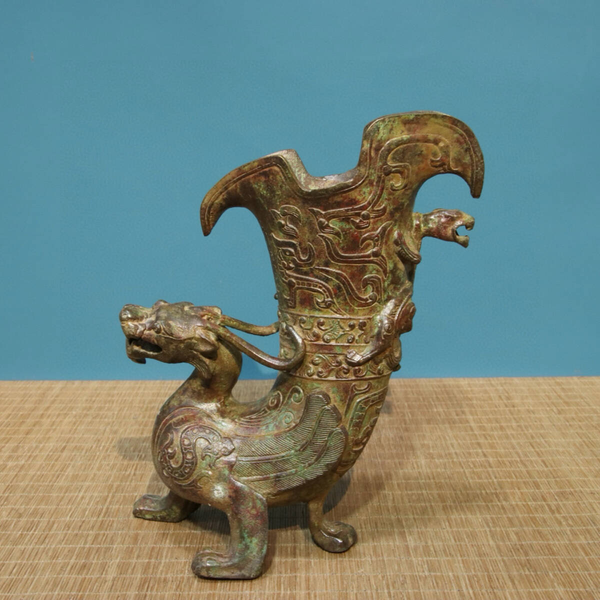 青銅器 旧蔵 商周時代 青銅―龍杯(銘文) 銅製 唐物 收蔵品 時代物 古美術 古置物 希少珍品 供養品 文房具 極細工 6.22lz