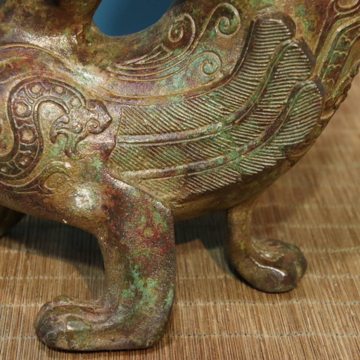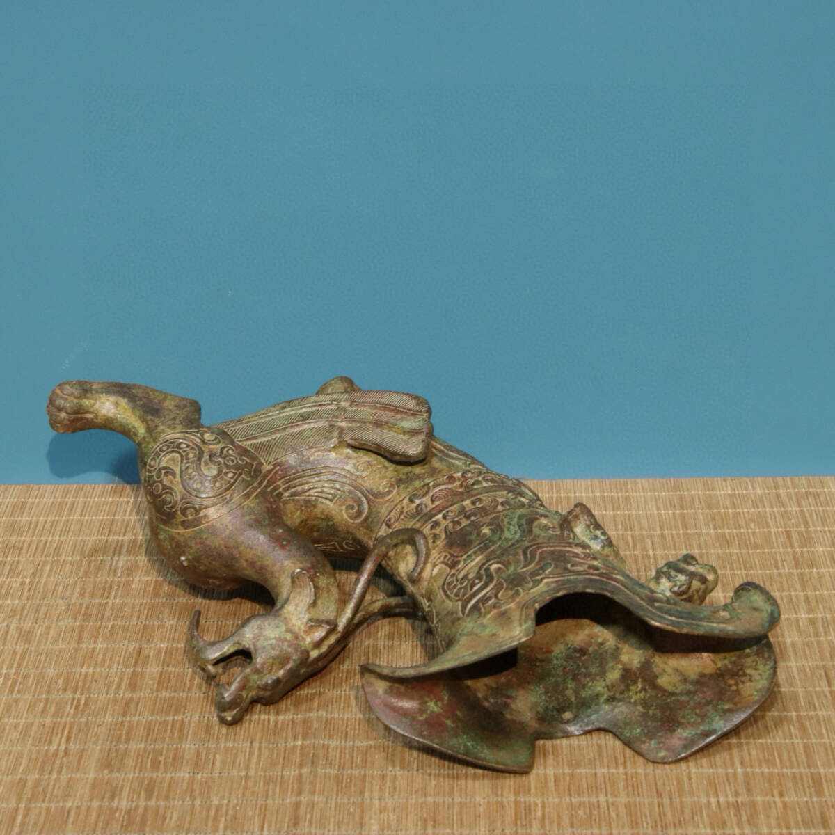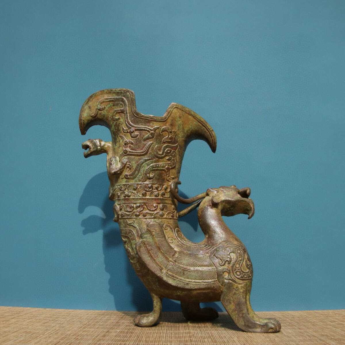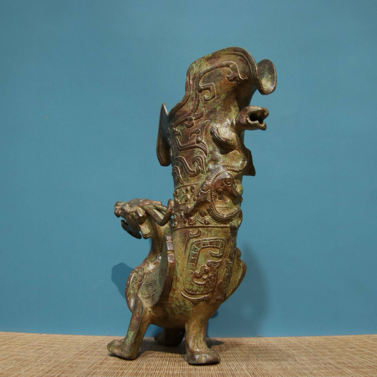 青銅器 旧蔵 商周時代 青銅―龍杯(銘文) 銅製 唐物 收蔵品 時代物 古美術 古置物 希少珍品 供養品 文房具 極細工 6.22lz