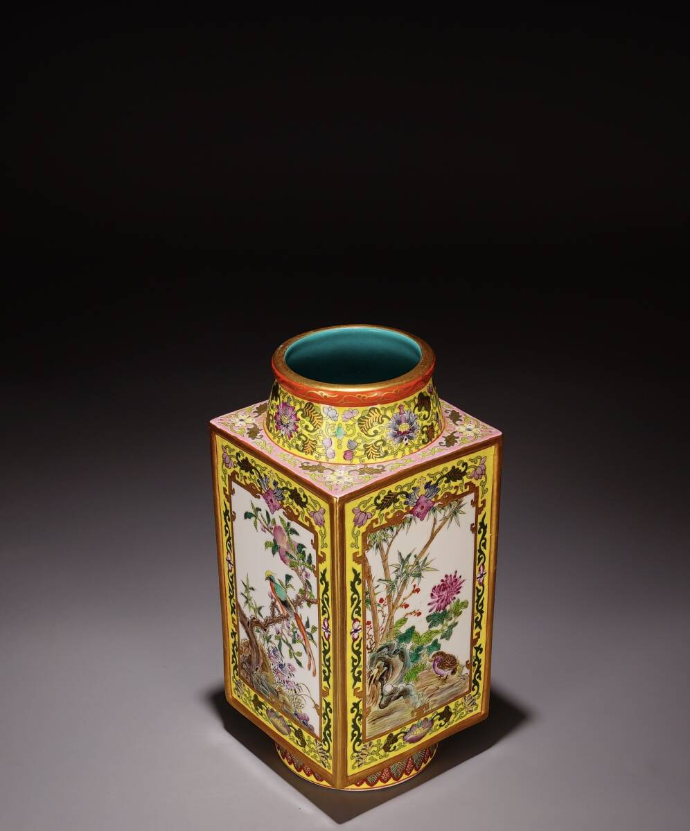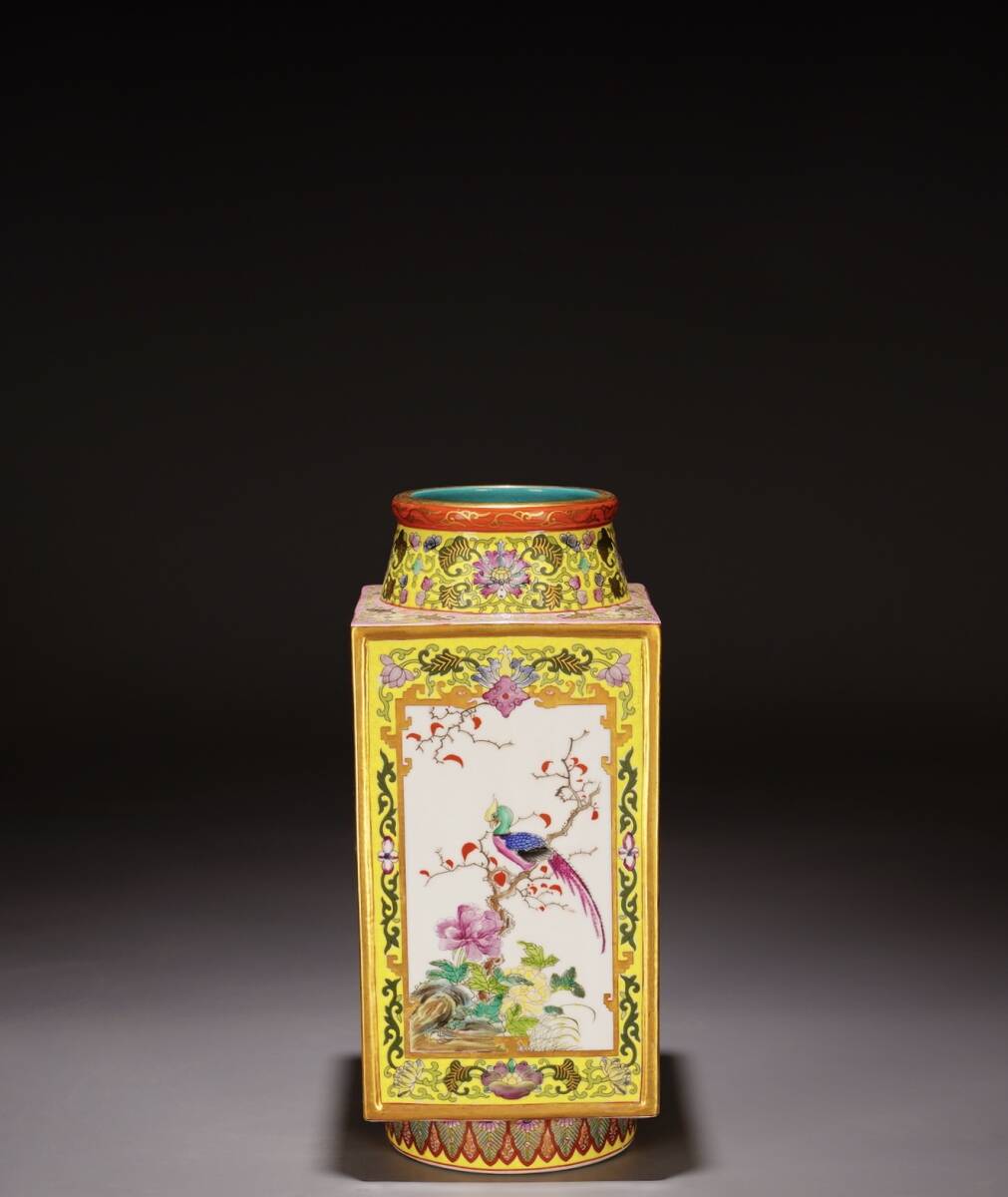 | 人間国宝 古磁器 白磁【清雍正琺瑯彩開窓花鳥紋棕式瓶】 工芸品 陶芸 磁器 置物 收藏品 時代物 中国美術 | |||
