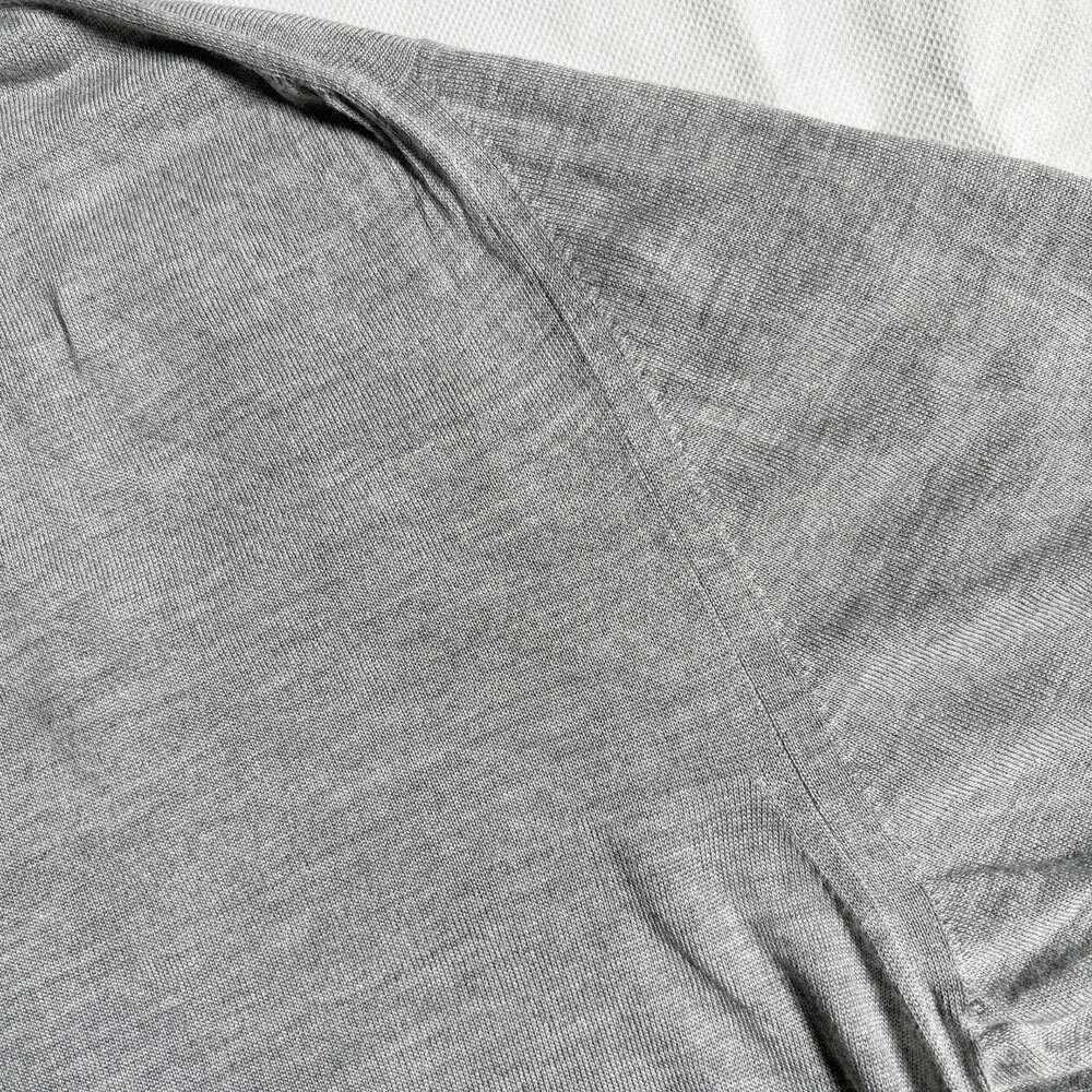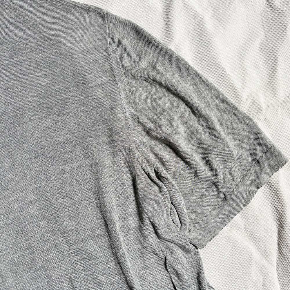 こちらは伸縮性に優れ、Tシャツ地くらい薄手に仕上げた、非常に滑らかな質感のシルクニット素材を採用。MADE IN ITALYで、信用のある卓越した技術を持ったニット工場で生産しているであろうアイテム。
