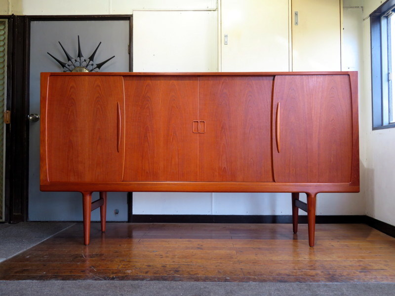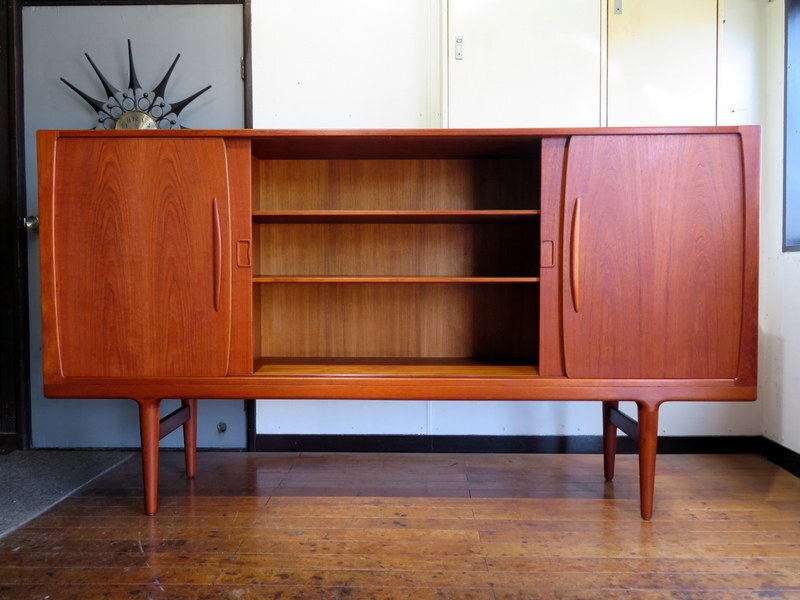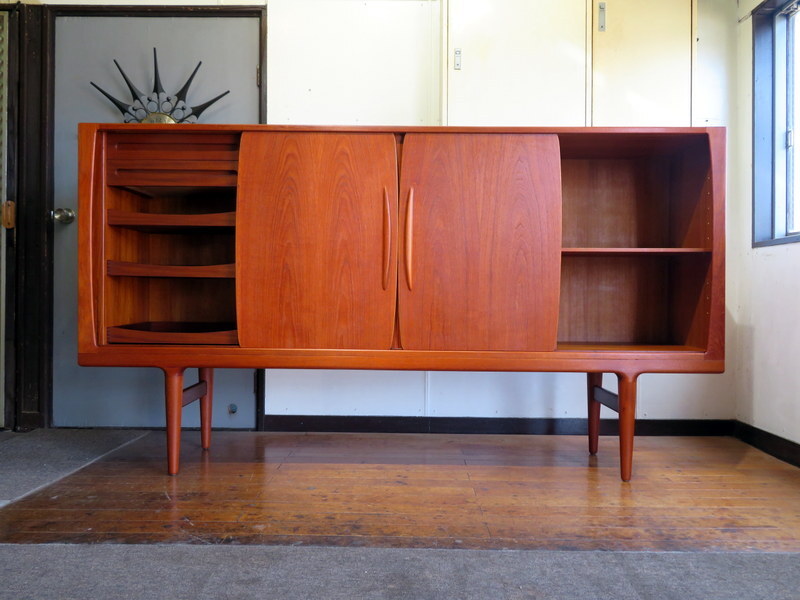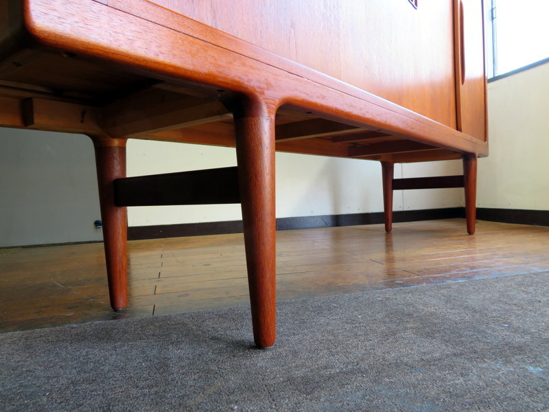 製造やデザイナーは表記が御座いませんので分かりかねますが、脚はGunni Omannのように見事な削り出しの物が取り付けられていますので、手の良いサイドボードだと思います。