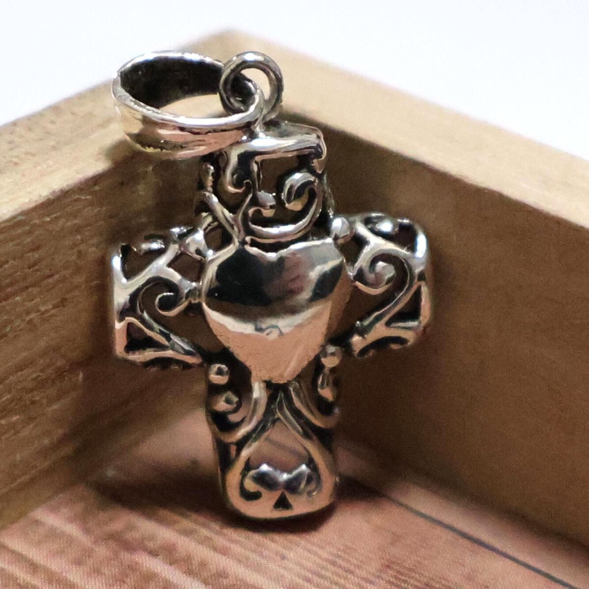首飾り ネックレス ギフト シルバー925 silver925 ペンダント チャーム 贈り物 プレゼント 人気 メンズ トップ ハートとクロス O0930