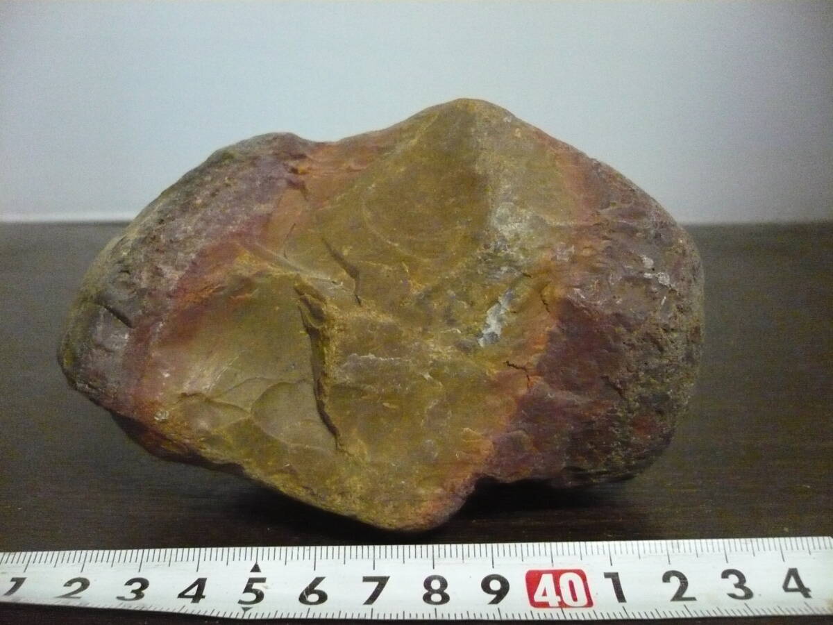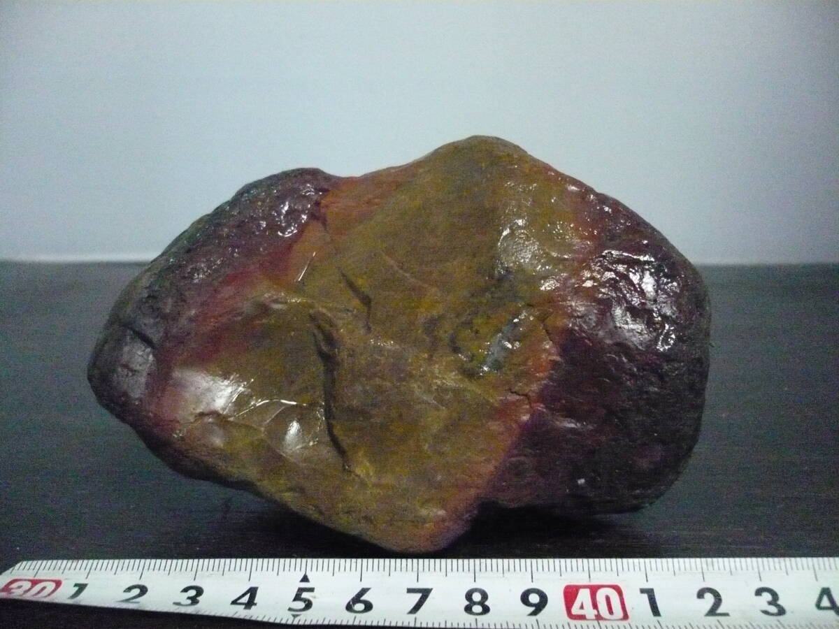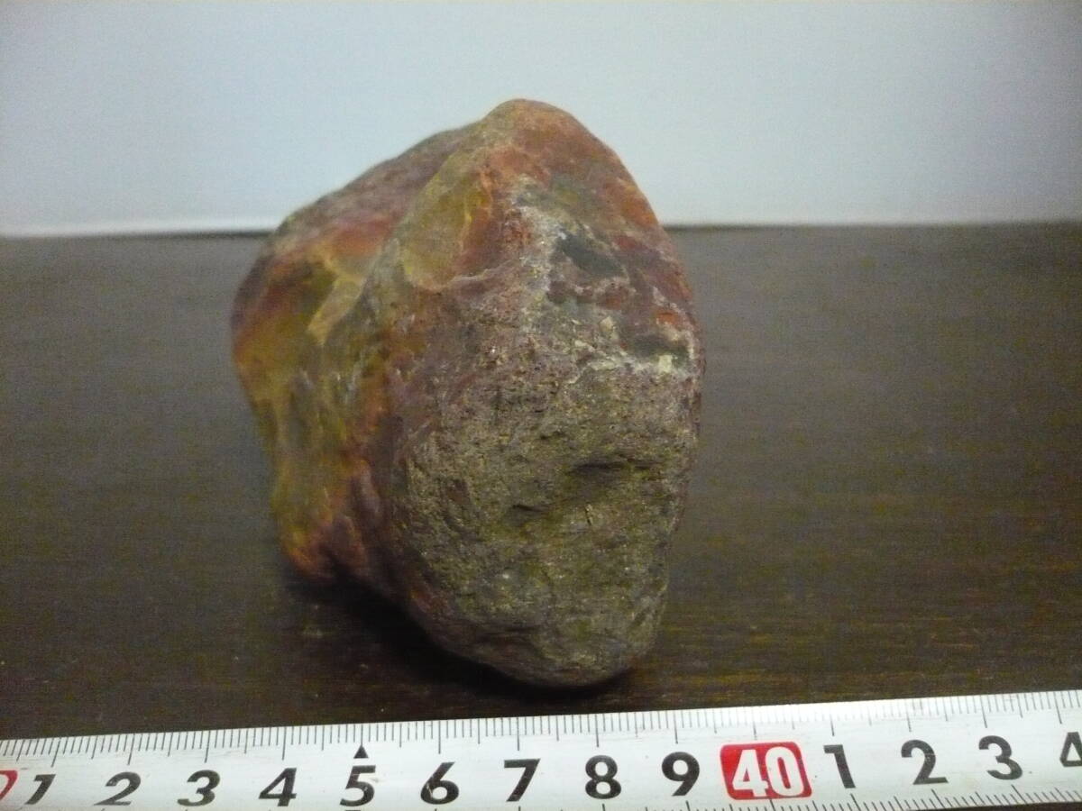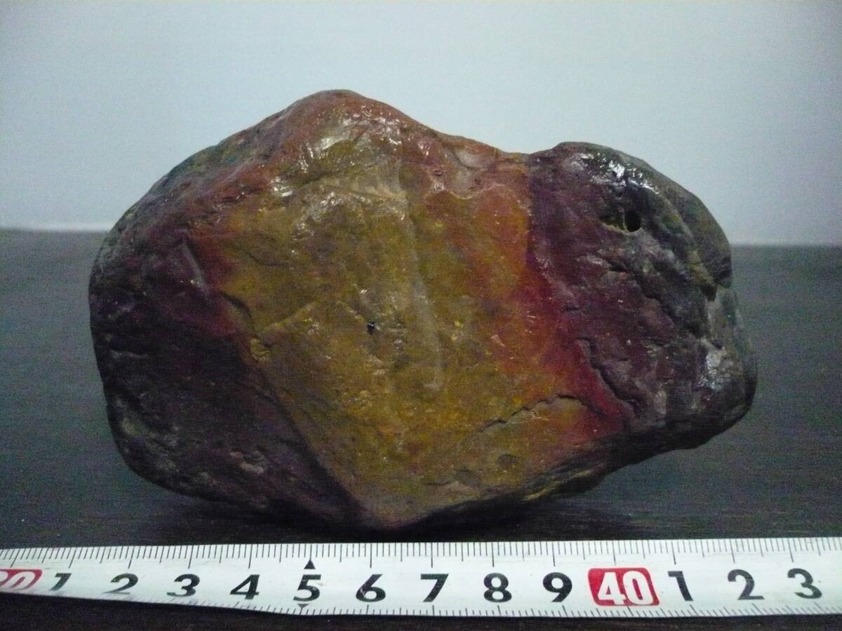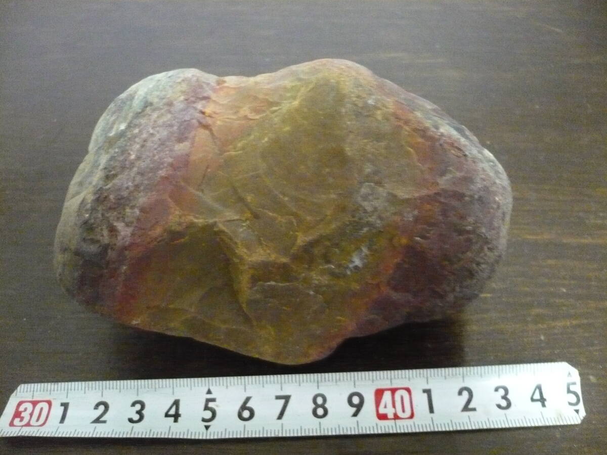 この石は小矢部川産の自然石赤黄色のジャスパー種に為ります