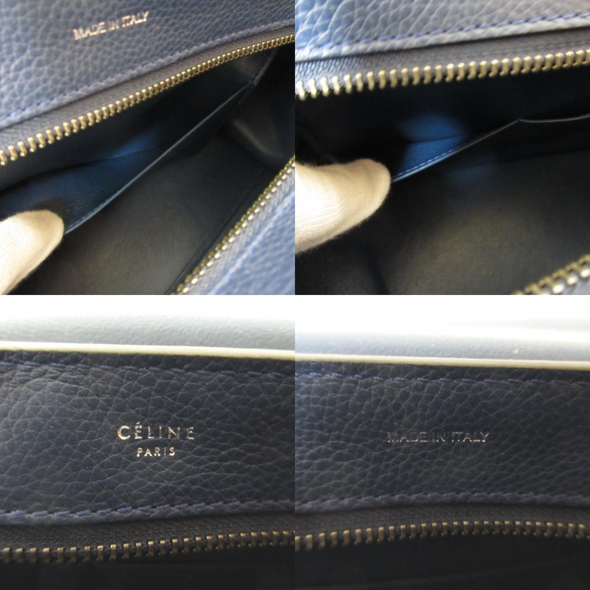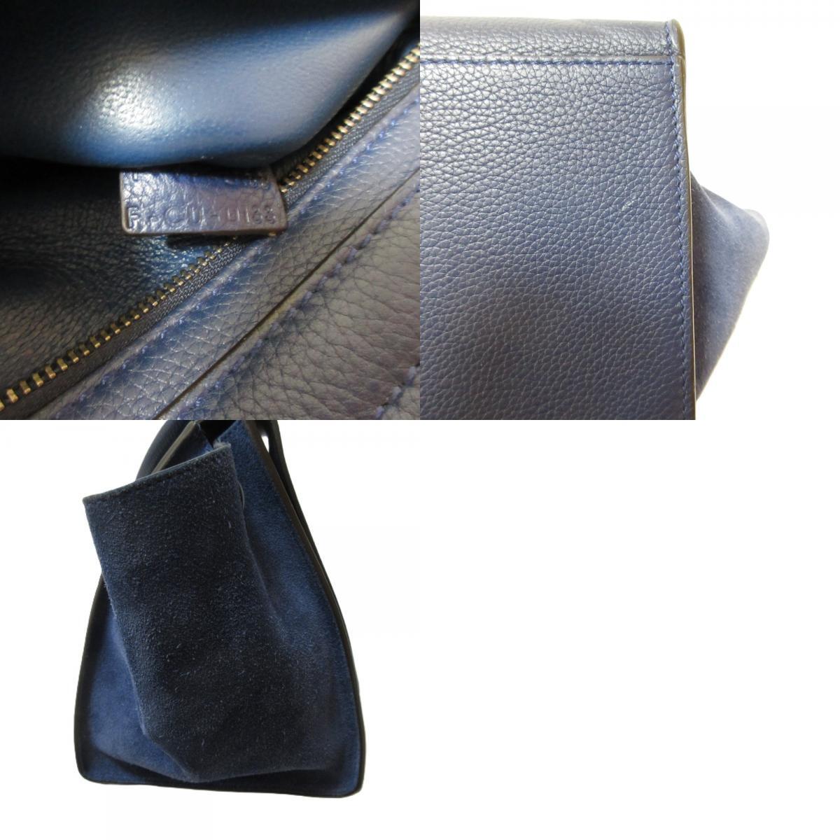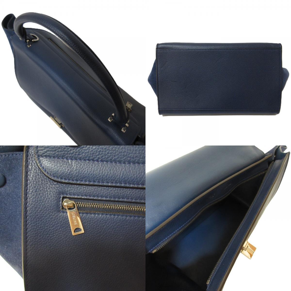 美品 CELINE セリーヌ トラペーズ レザー スエード ターンロック ハンドバッグ ショルダーバッグ ネイビー×シルバー金具
