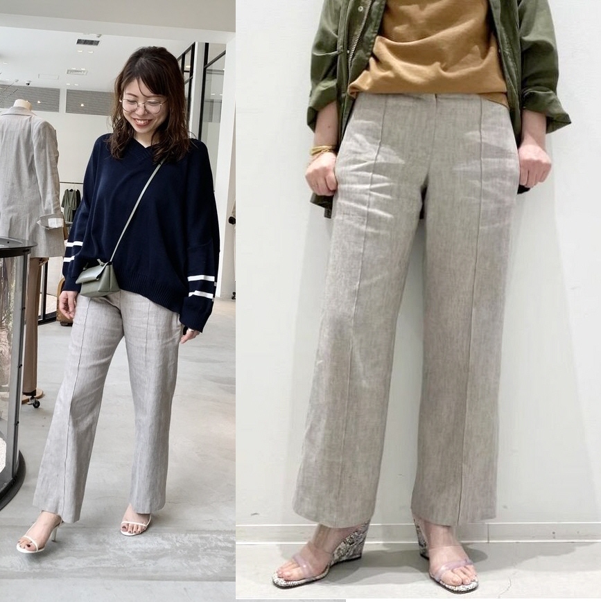 ややハリ感のあるリネンストレッチ素材のクロップドパンツです。