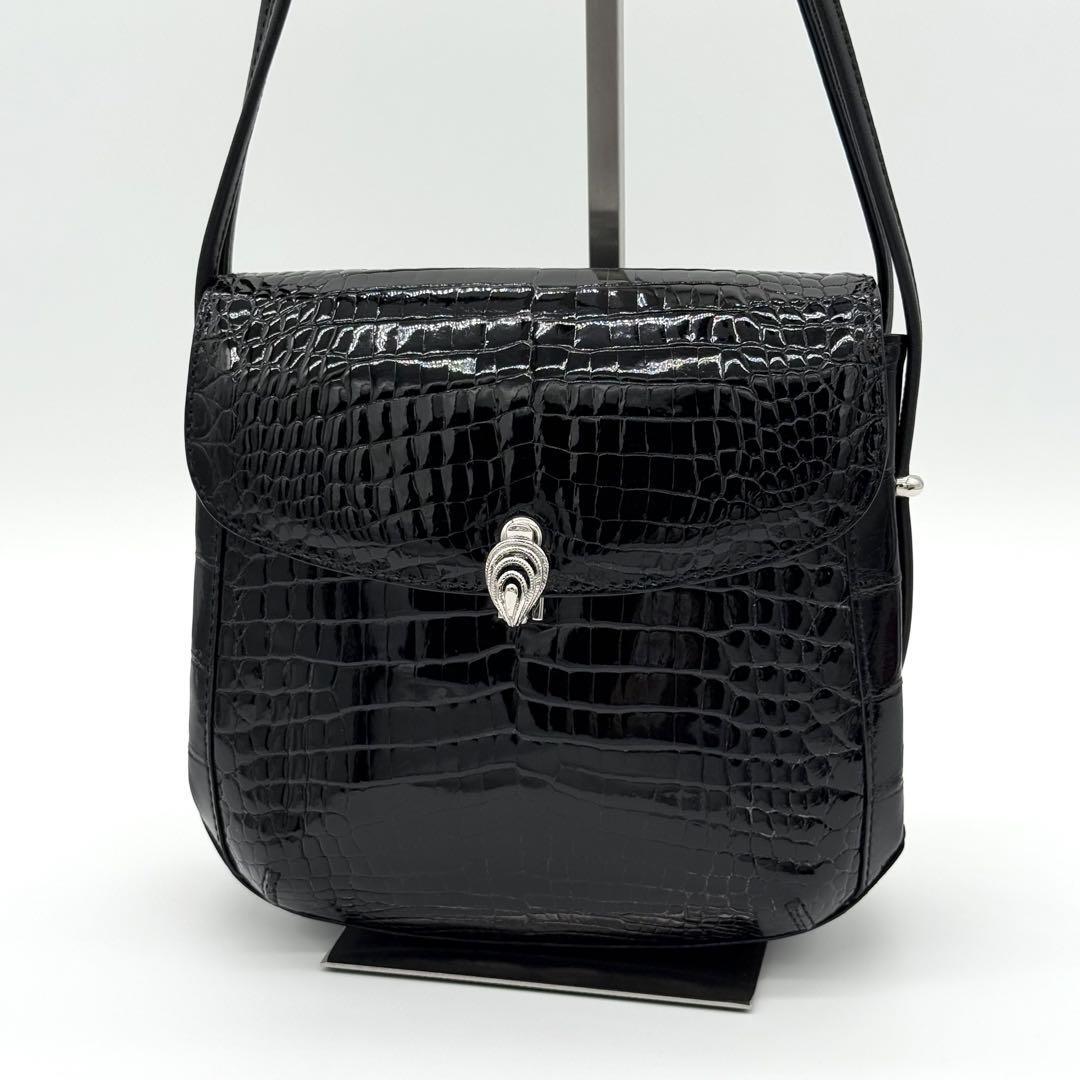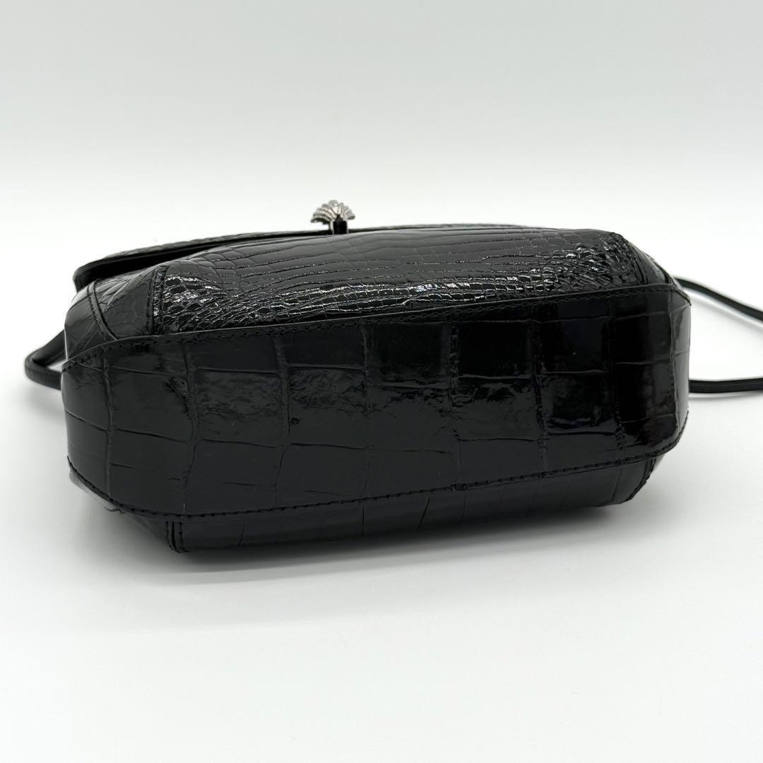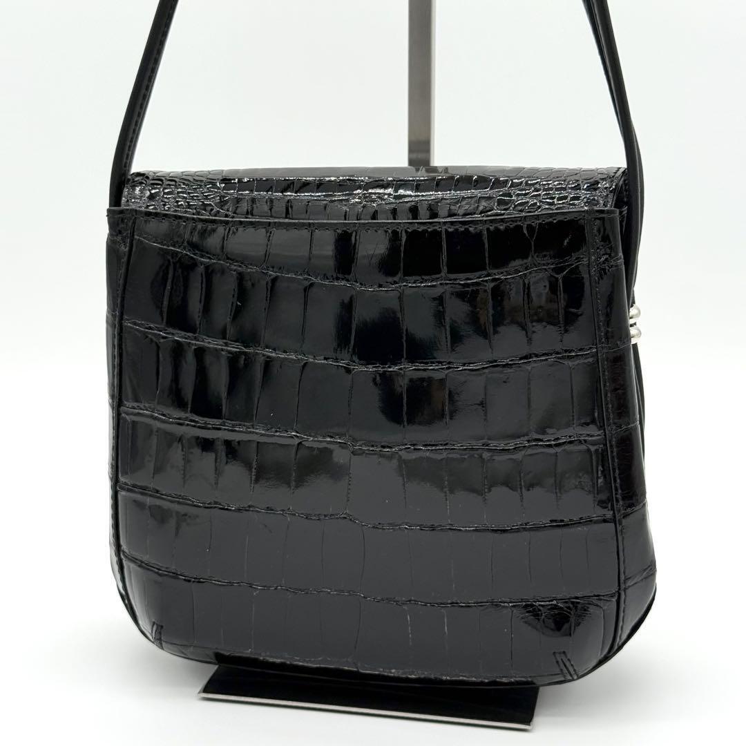 【JRA・極美品】貴彦 TAKAHIKO CROCODILE クロコダイル フラップ ショルダーバッグ 斜めがけ クロスボディ レディース 黒色 GI740411