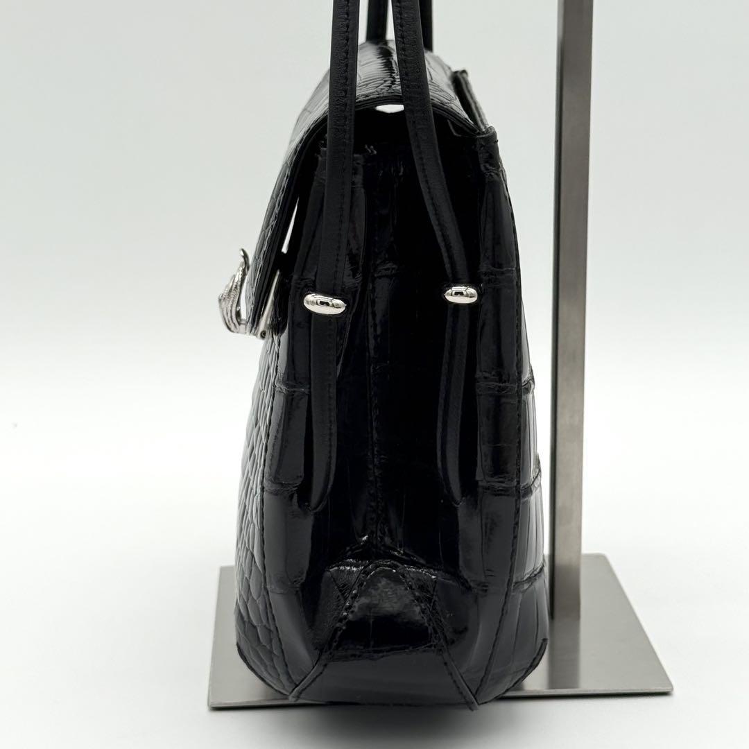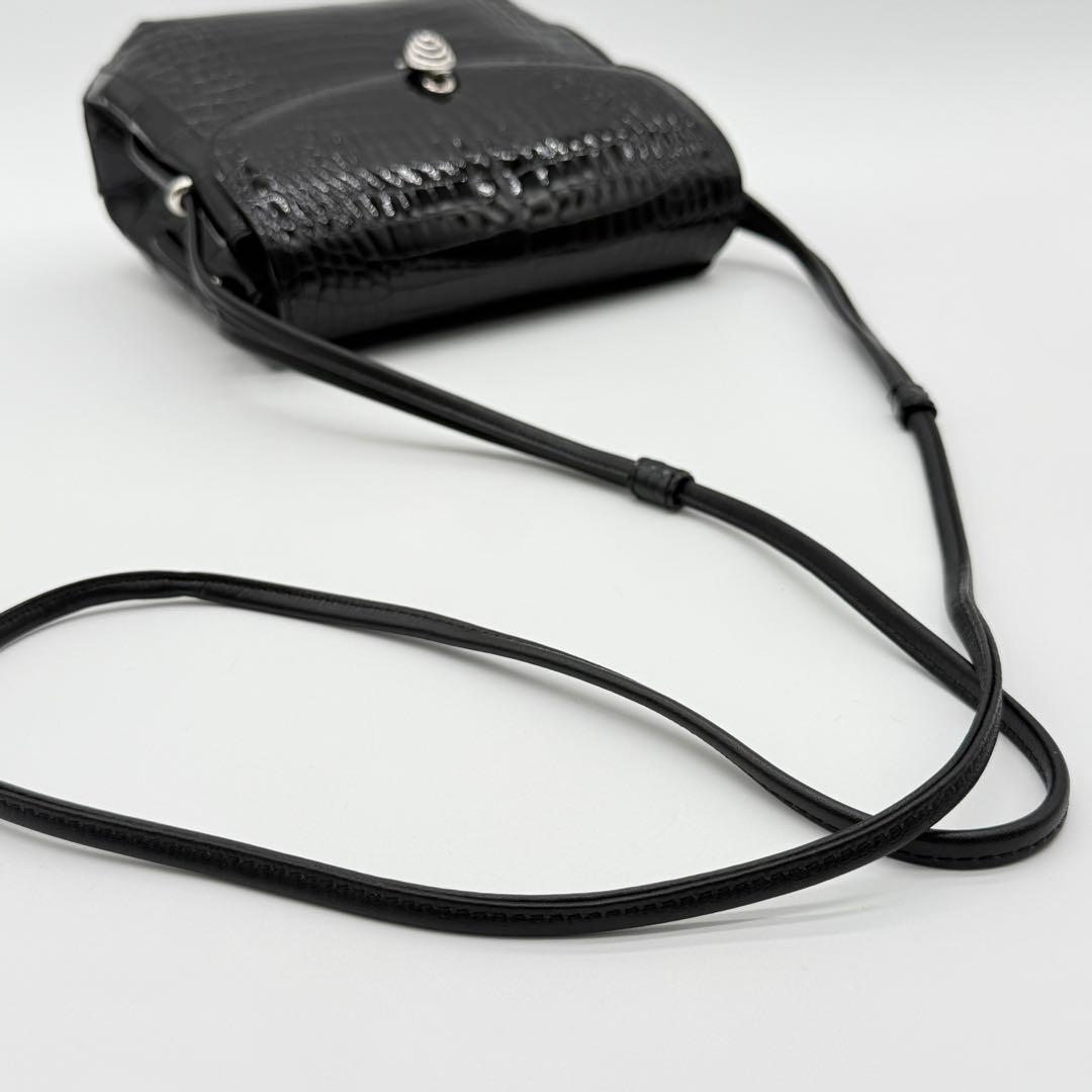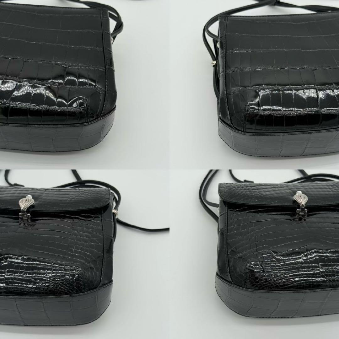 【JRA・極美品】貴彦 TAKAHIKO CROCODILE クロコダイル フラップ ショルダーバッグ 斜めがけ クロスボディ レディース 黒色 GI740411